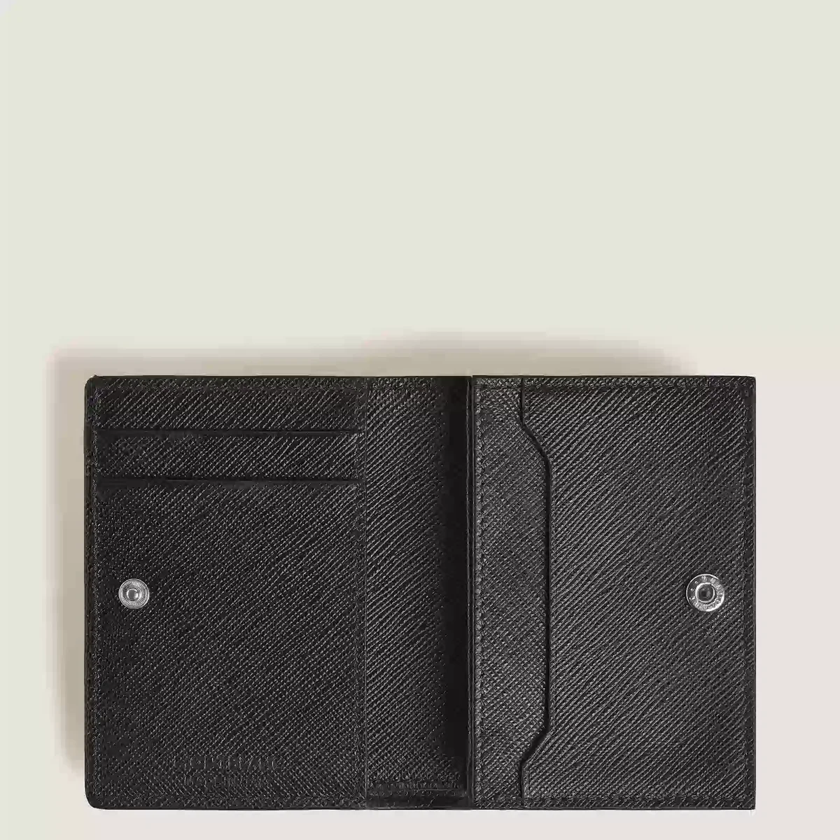 Die Sartorial Nano Continental Geldbörse aus geprägtem Sartorial-Leder in Tweedblau, einer einzigartigen Farbe, die Schwarz und Blau elegant miteinander verbindet, ist ein zeitloses Must-have. Diese kompakte und dennoch geräumige horizontale Geldbörse verfügt über ein Münzfach, eine sichere Klappe mit Druckknopf und das Montblanc Emblem mit Palladium-Finish. Sie bietet Platz für ein Kreditkartenfach, drei zusätzliche Kartenfächer, ein Geldscheinfach, ein Reißverschlussfach und zwei zusätzliche Fächer für eine übersichtliche Organisation.