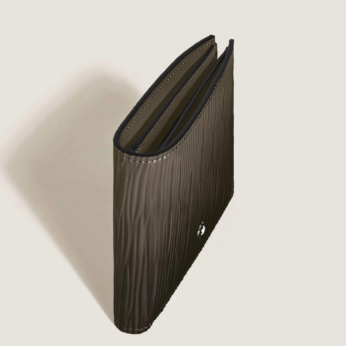 Diese schlanke und stilvolle klassische Brieftasche ist ein eleganter Begleiter für den täglichen Gebrauch. Sie ist aus khakifarbenem Corteccia-Leder mit geprägtem Baumrindenmotiv und handgefertigtem Sfumato-Effekt gefertigt und verbindet raffinierte Handwerkskunst mit Funktionalität. Im Inneren verfügt sie über sechs Kreditkartenfächer, zwei Fächer für Banknoten, zwei zusätzliche Fächer für Quittungen und das dezente Montblanc-Emblem auf der Vorderseite.