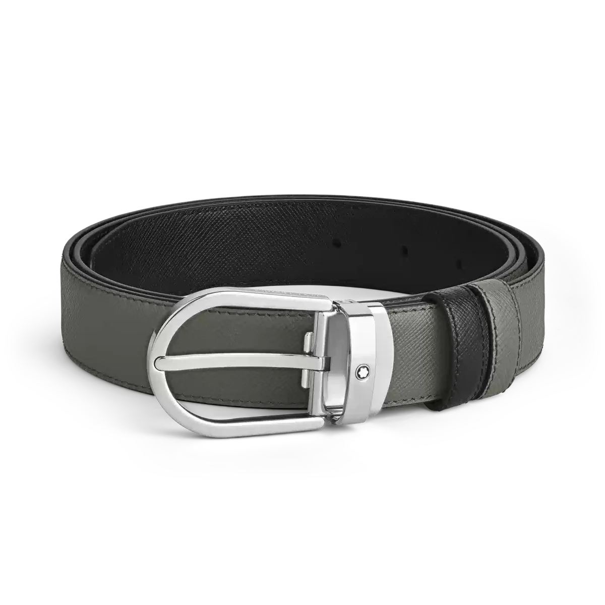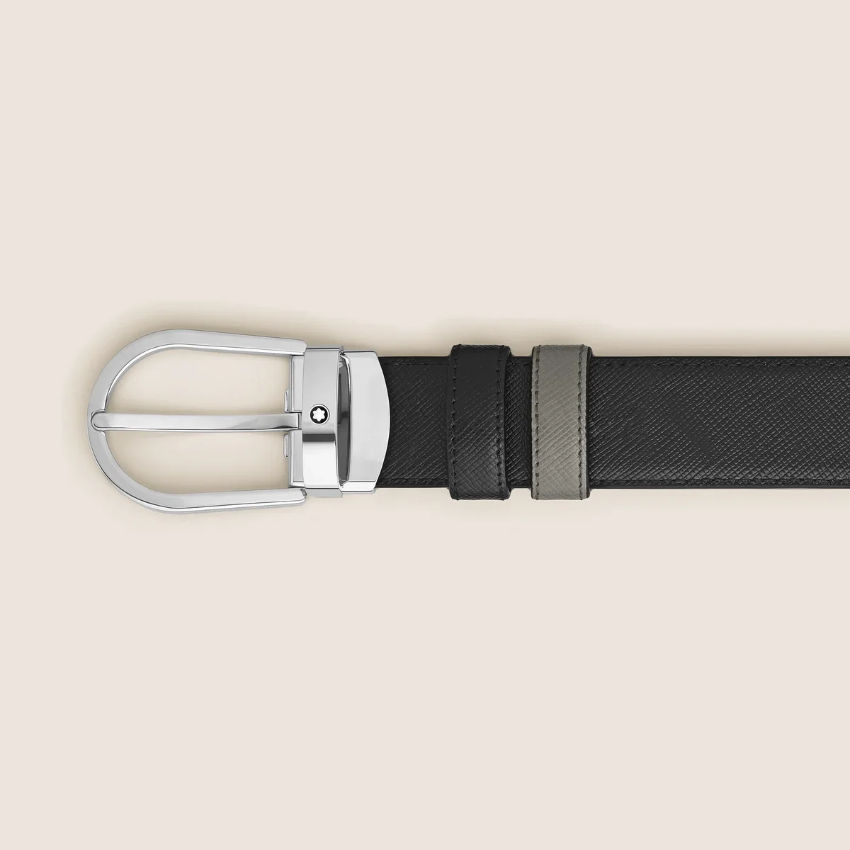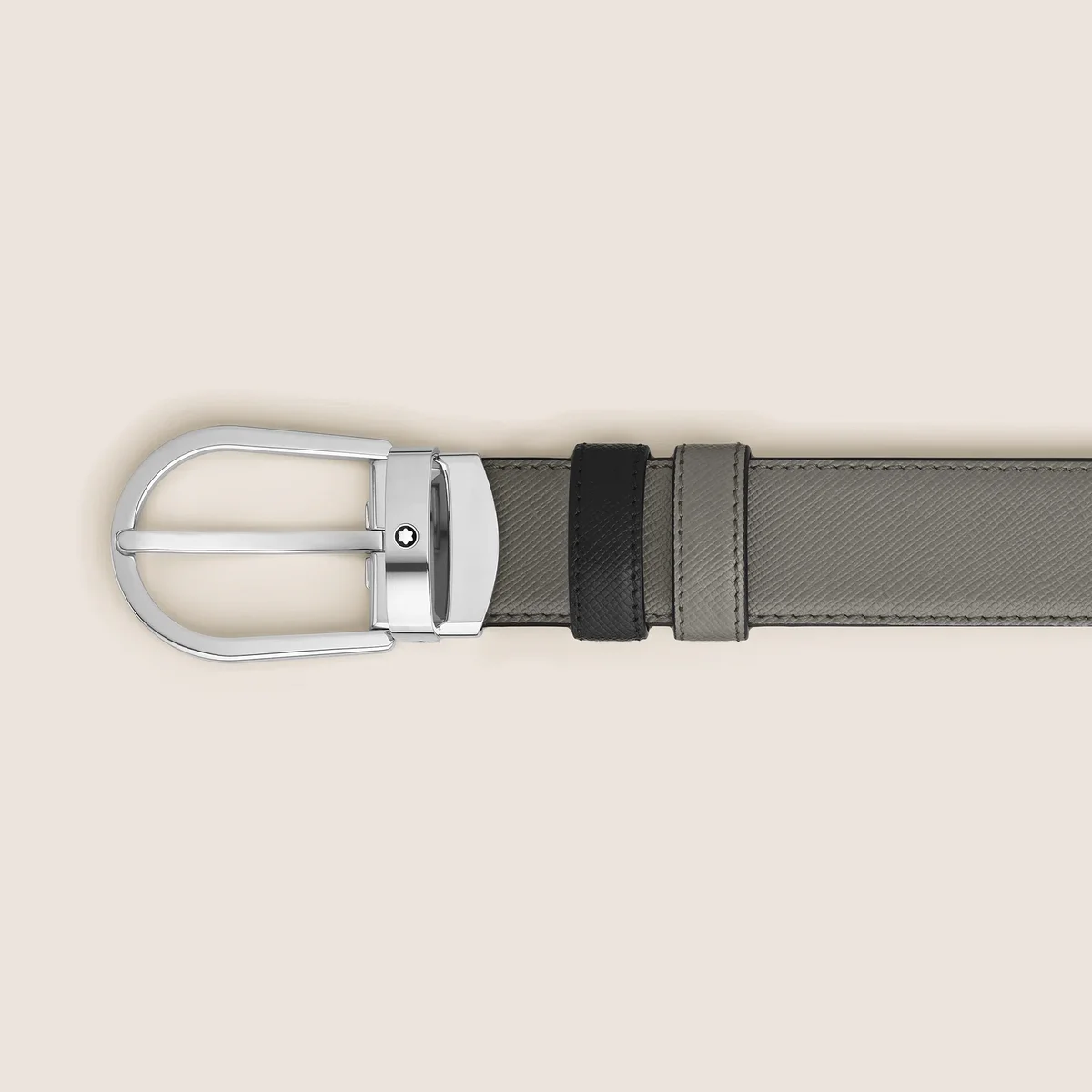 Entdecken Sie alle Details des Lederarmbands mit Hufeisen-Schnalle, mittelgrau/schwarz, 30 mm, wendbar. Kaufen Sie online im offiziellen Montblanc Store.