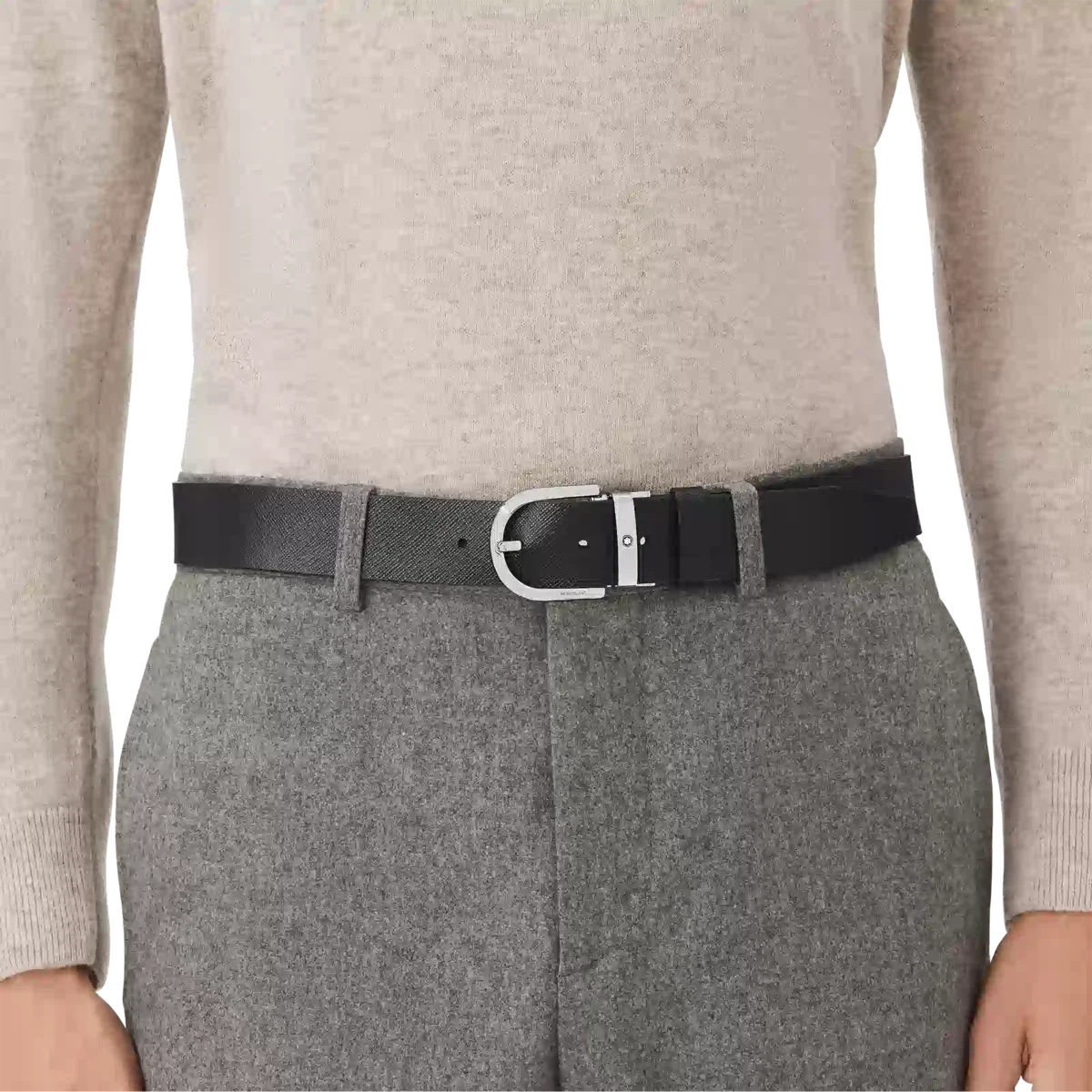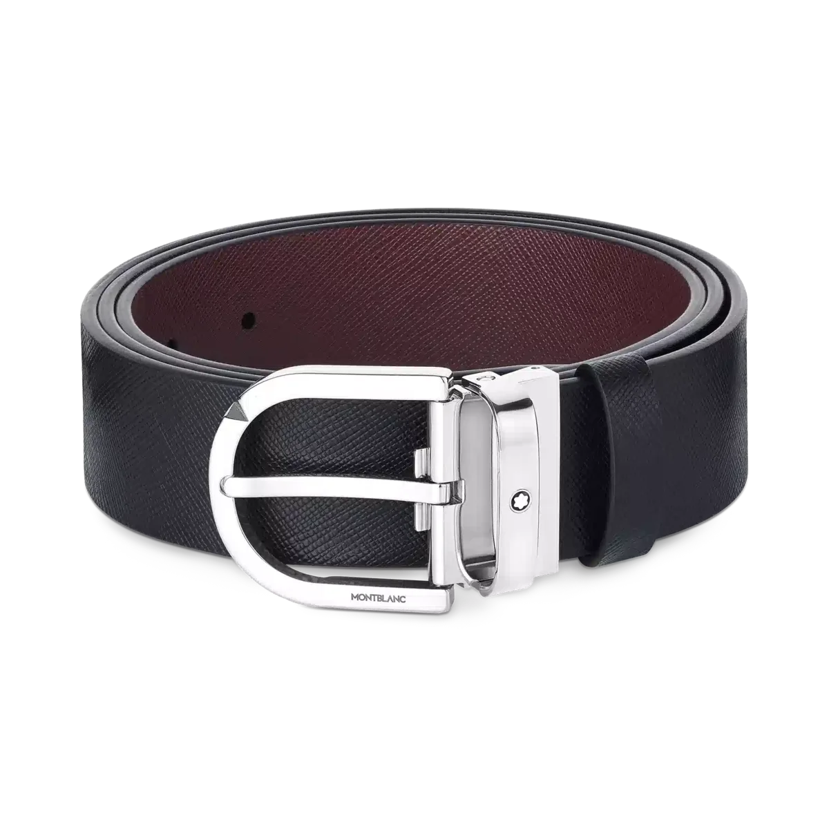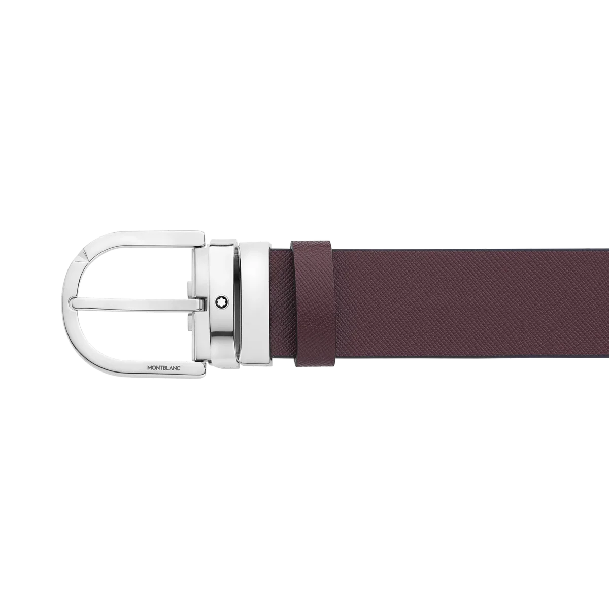 Dieser vielseitige und auffällige 35-mm-Gürtel aus Saffiano-Leder mit Print ist die richtige Wahl für alle, die keine Angst haben, ein Zeichen zu setzen. Seine Hufeisen-Drehschnalle verfügt über einen leicht zu öffnenden Mechanismus und passt nahtlos sowohl zur schwarzen als auch zur burgunderroten Seite des Gürtels.