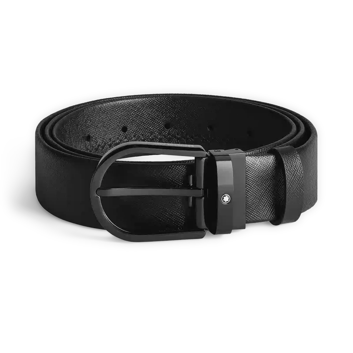 Entdecken Sie alle Details des schwarzen 35-mm-Ledergürtels mit Hufeisen-Schnalle. Kaufen Sie online im offiziellen Montblanc Store.