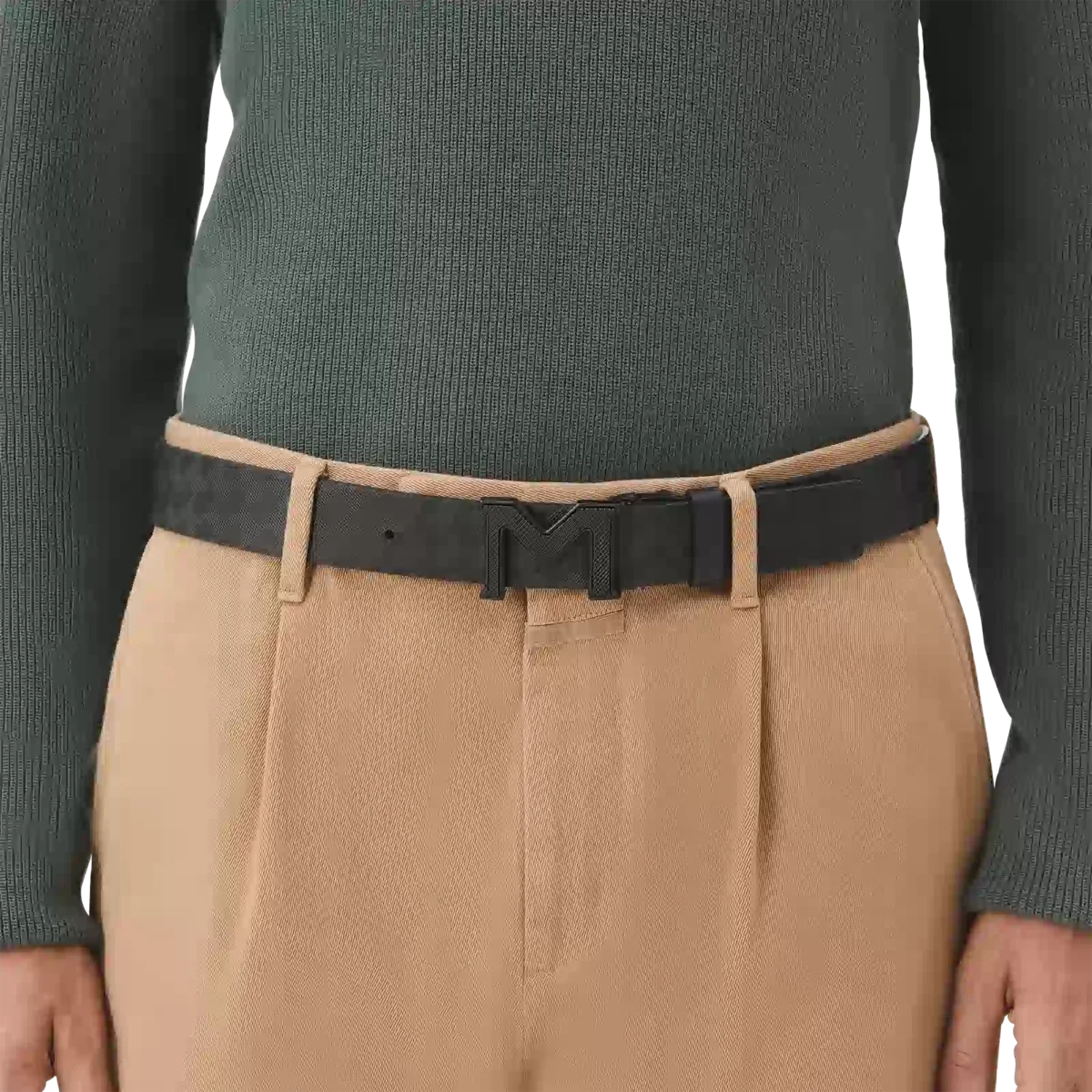 Dieser Wendegürtel aus strukturiertem schwarzem Extreme 3.0-Leder auf der einen Seite und glattem schwarzem Leder auf der anderen Seite ist sowohl sportlich als auch stilvoll. Die markante M-Schnalle ist eine Hommage an das zeitlose Design von Montblanc.