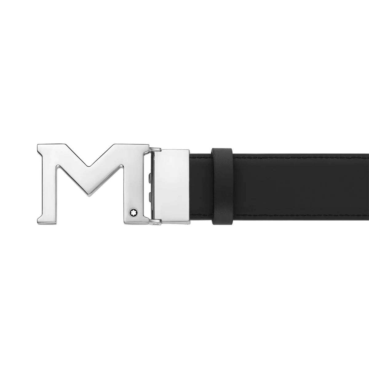 Palladiumbeschichtete M-Schnalle. Selbstverstellbarer, 3,5 cm x 120 cm langer, wendbarer Gürtel aus schwarzem genarbtem und schwarzem glattem Leder für einen sportlichen Look.