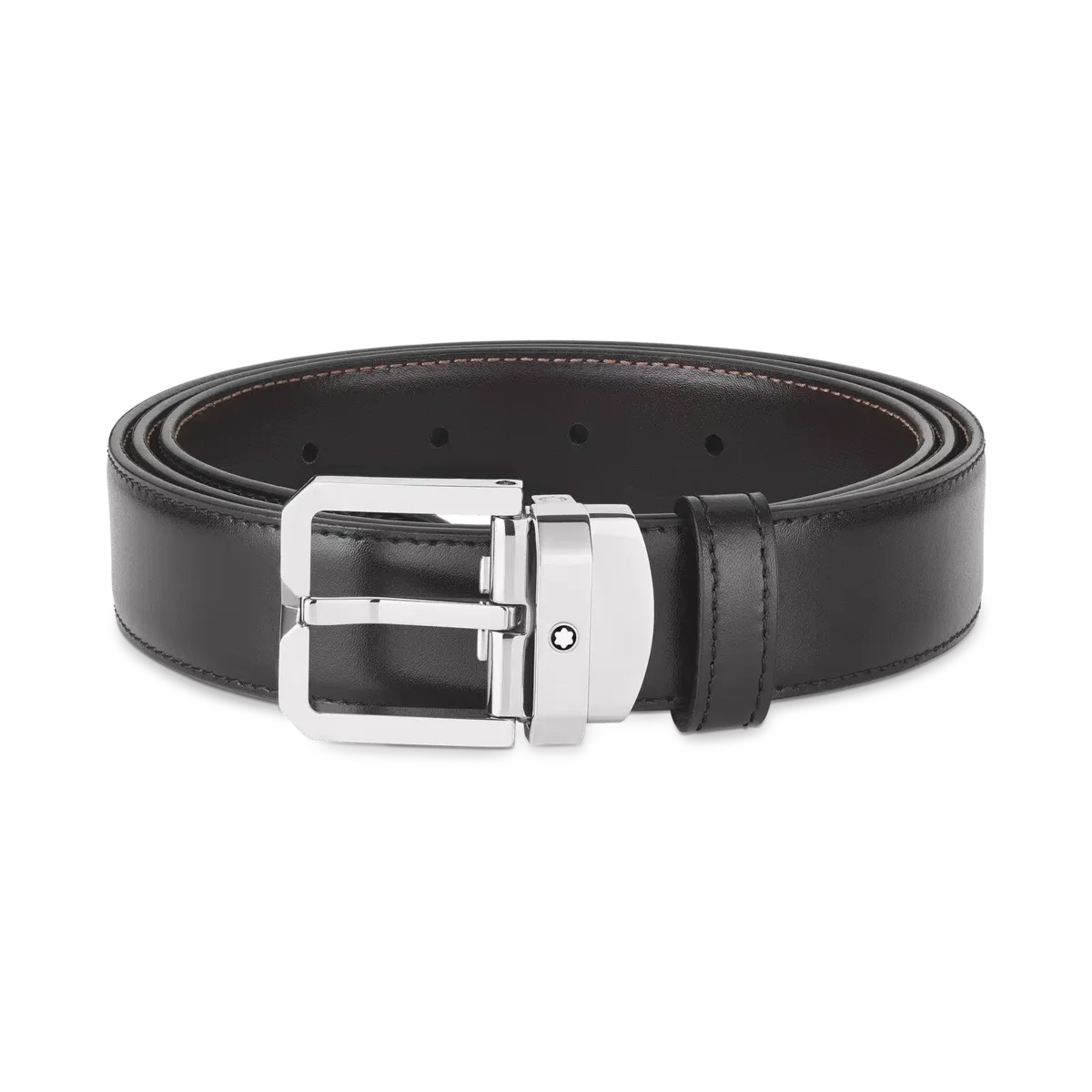 Entdecken Sie alle Details des schwarz/braunen 30 mm breiten Ledergürtels mit Wendefunktion. Kaufen Sie online im offiziellen Montblanc Store.