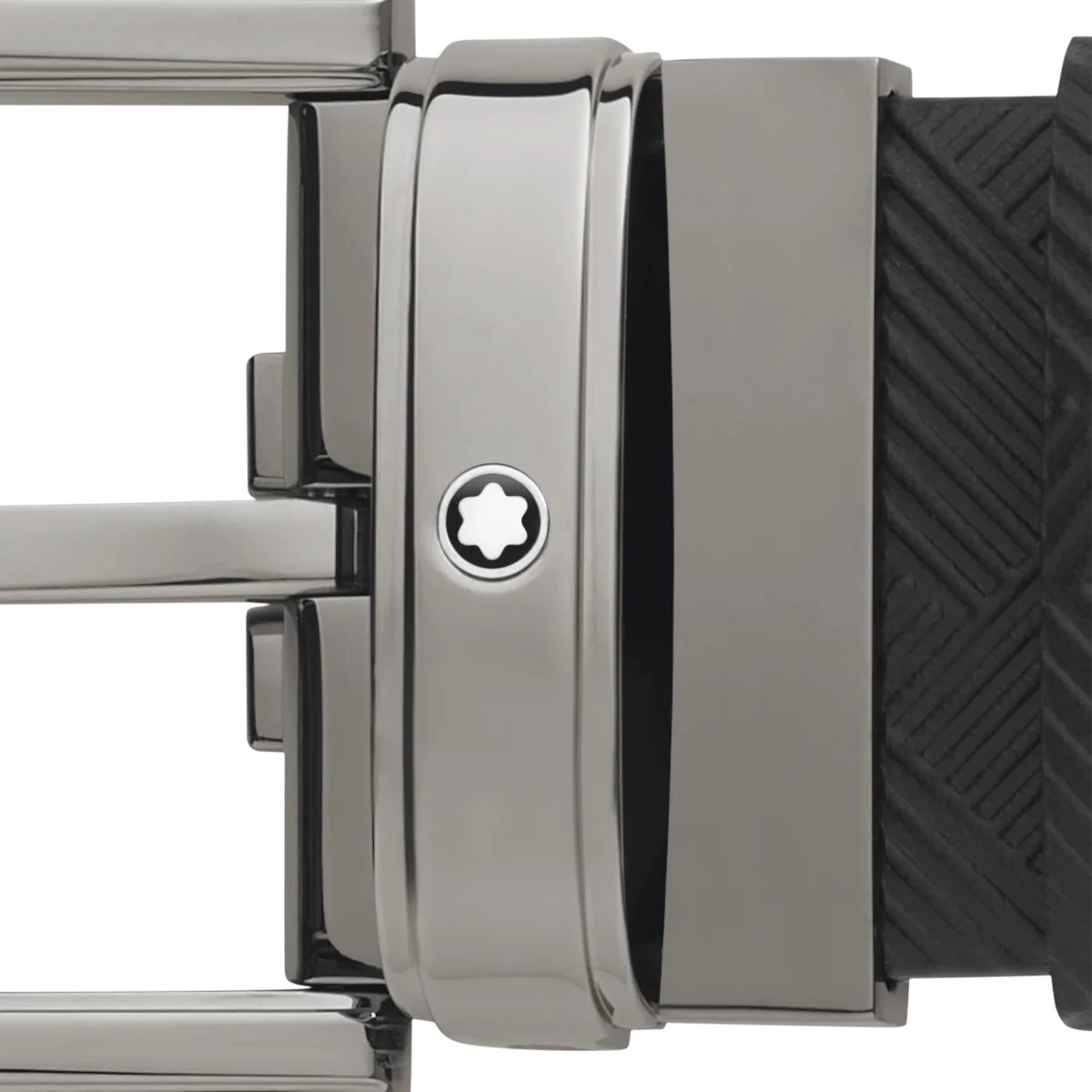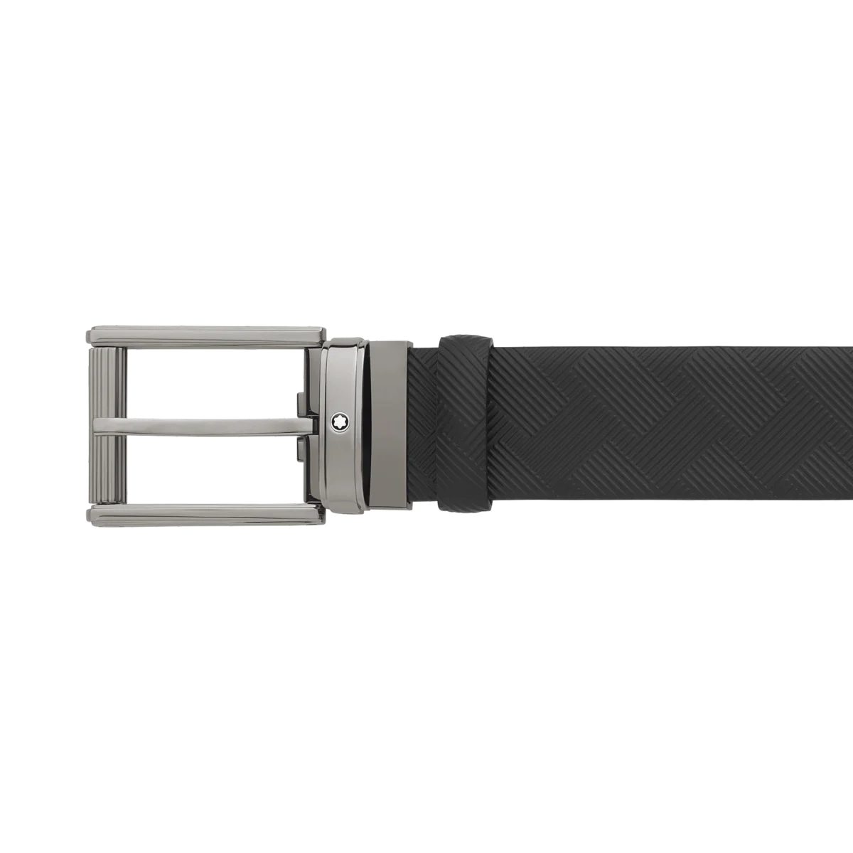 Rechteckige Rolle, glänzende Ruthenium-Finish-Dornschließe. Selbstverstellbares, schwarzes Montblanc Extreme 3.0 Lederarmband. Entworfen für einen sportlichen Look.