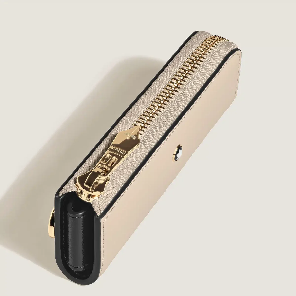 Dieses wolkige beigefarbene Etui für einen Stift wurde für Stifte in der Größe des Heritage Baby entworfen und ist ein elegantes Accessoire, um Ihr Lieblingsschreibgerät sicher zu transportieren oder aufzubewahren. Das aus luxuriösem Leder gefertigte Etui mit Reißverschluss ist auf der Vorderseite mit dem Montblanc Emblem verziert. Dank eines zusätzlichen D-Rings auf der Rückseite lässt sich das Etui bequem an größeren Lederwaren befestigen, sodass Sie unterwegs jederzeit schnell auf Ihr Schreibgerät zugreifen können.