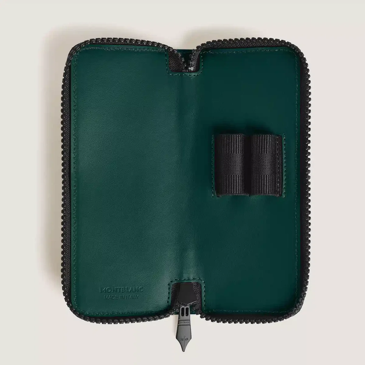 Diese aus britischgrünem Vollnarbenleder gefertigte und mit dem ikonischen Extreme 3.0-Motiv geprägte Stifttasche bietet eine stilvolle Möglichkeit, Ihre Lieblingsschreibgeräte sicher zu transportieren oder aufzubewahren. Sie bietet Platz für zwei Stifte in der Größe des Meisterstück Classique oder Le Grand, verfügt über einen sicheren Reißverschluss, einen Reißverschlusszieher in Form einer Feder und ist mit dem Montblanc-Emblem für einen raffinierten Touch versehen.