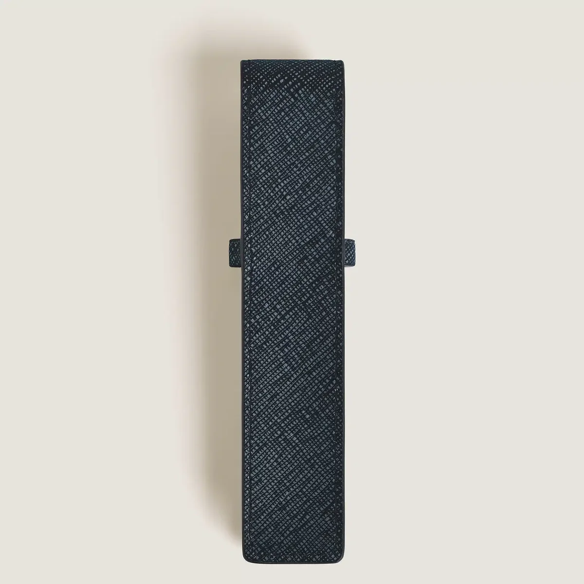 Dieses elegante Etui für Ihre wertvollsten Schreibgeräte ist aus geprägtem Sartorial-Leder in einer raffinierten Zweifarbkombination aus edlem Blau und Schwarz gefertigt. Seine überlappende Silhouette ist von der Form eines Briefumschlags inspiriert und verankert es tiefer in der Kultur des Schreibens.