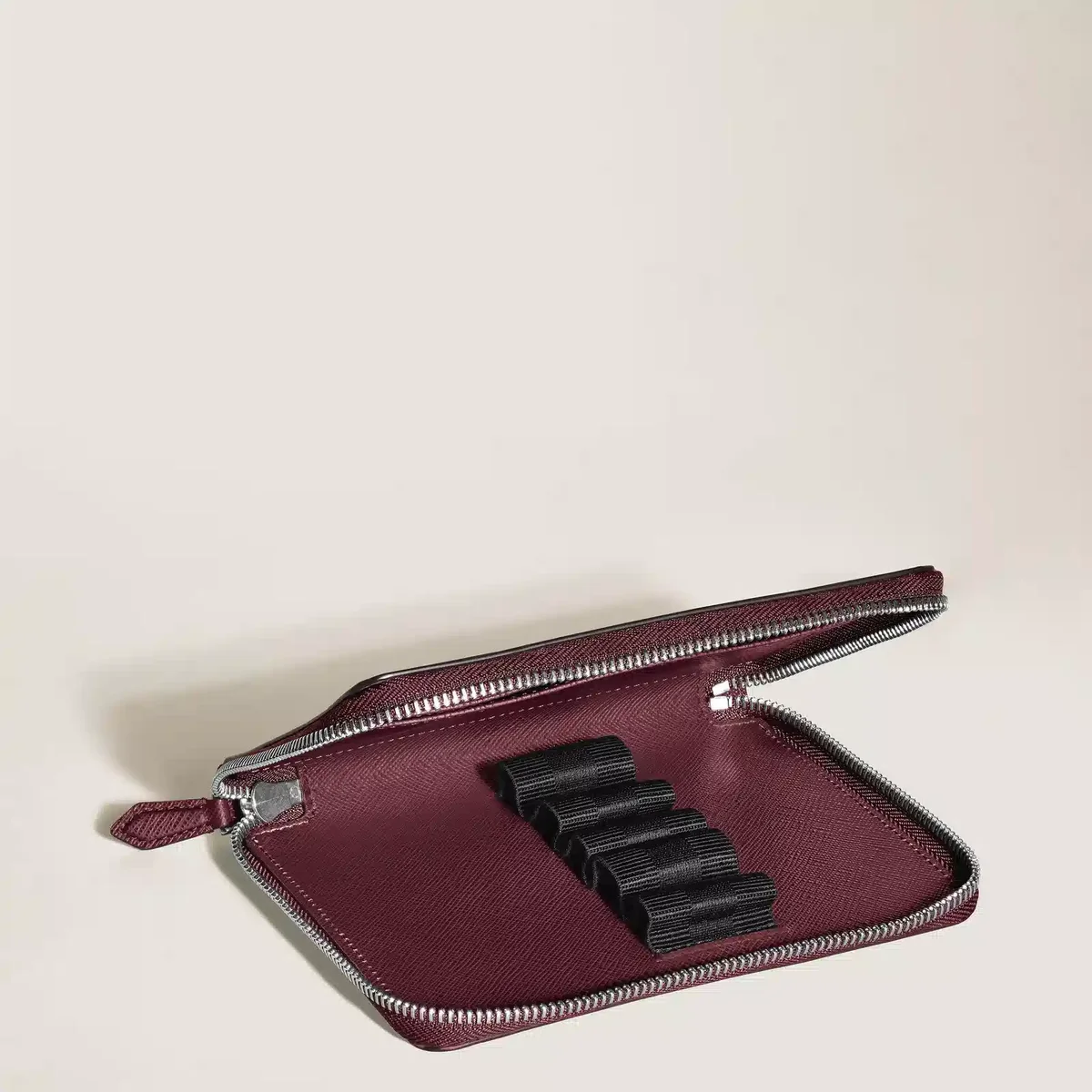 Schützen Sie Ihre Lieblingsschreibgeräte stilvoll mit diesem großen Sartorial-Stifttäschchen. Das aus edlem Saffiano-Leder in Cassis gefertigte Täschchen mit Reißverschluss verfügt über fünf spezielle Fächer für Stifte in der Größe Meisterstück Classique oder Le Grand. Als i-Tüpfelchen ist sie mit dem Montblanc Emblem verziert.