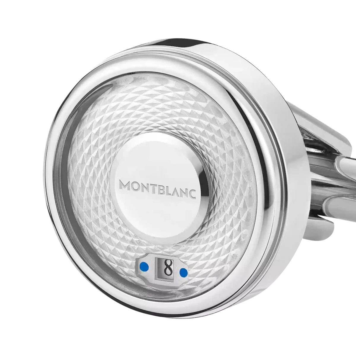 Diese Manschettenknöpfe sind eine Hommage an das Design der Montblanc Star Legacy Nicolas Rieussec Chronograph Uhr. Die zentrale Platte aus Edelstahl ist mit einem gravierten Guilloche-Muster und dem Montblanc Markennamen verziert, während die Datumsfunktion durch Drehen des Außenrings um die zentrale Platte angezeigt wird.