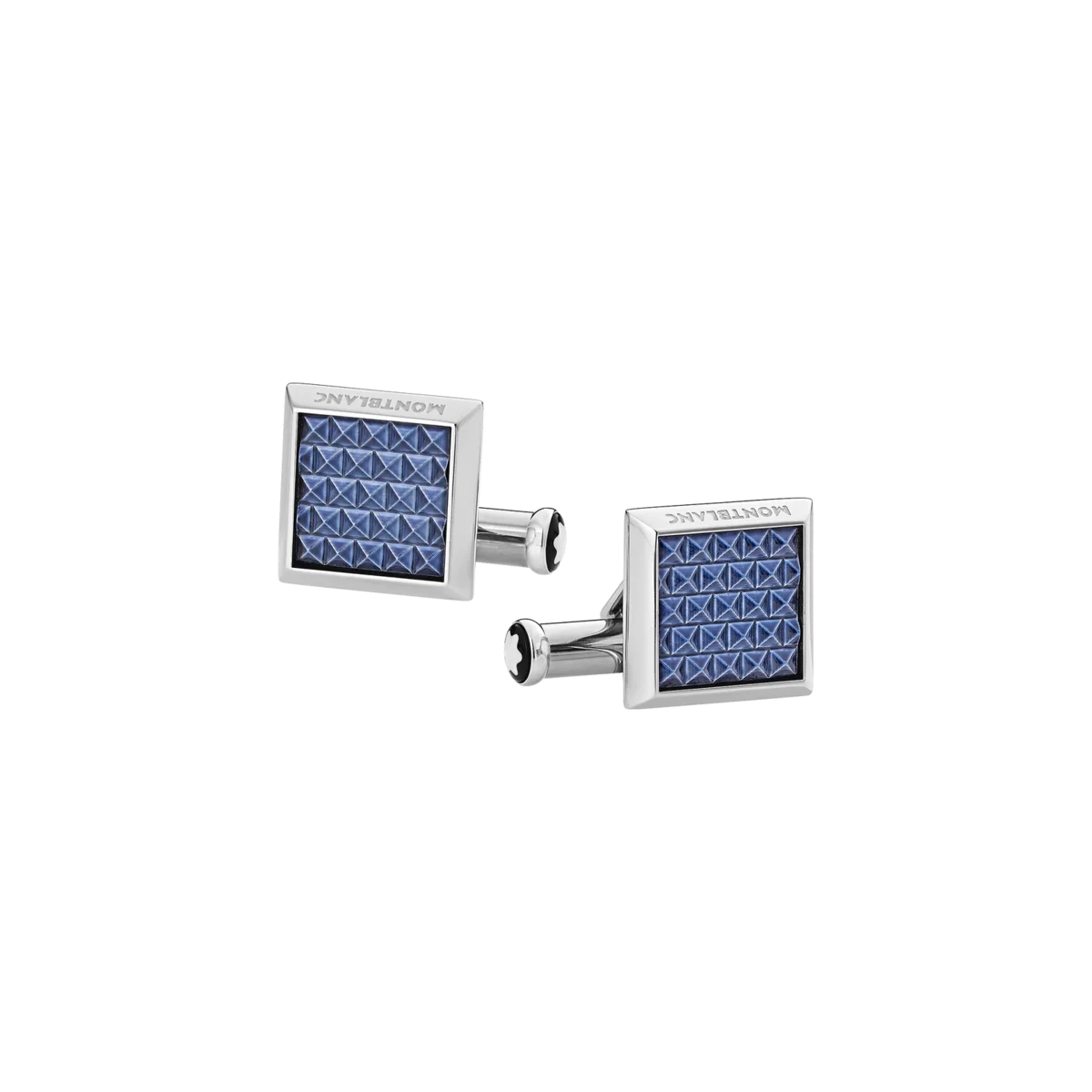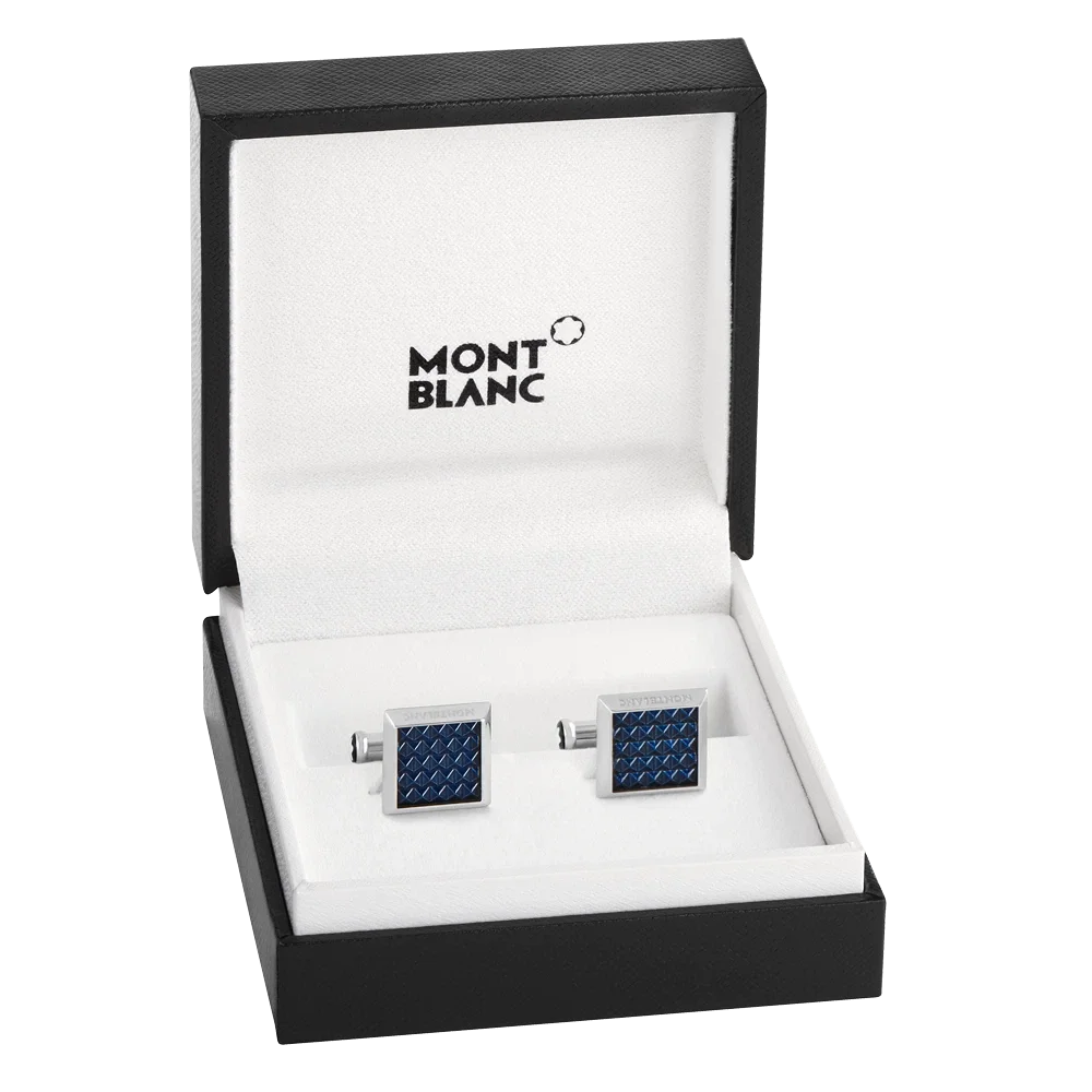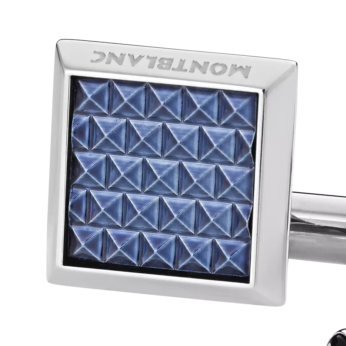 Die Meisterstück-Kollektion zelebriert zeitlosen Stil. Diese rechteckigen Manschettenknöpfe aus Edelstahl, die mit dem Montblanc Meisterstück Schreibgerät verbunden sind, sind von der blauen Stunde inspiriert und mit einem Juwel mit einem markanten Montblanc-Signaturzeichen versehen.