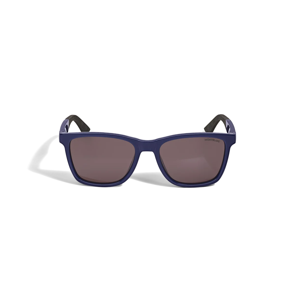 Entdecken Sie alle Details der eckigen Sonnenbrille mit blauem Spritzgussrahmen. Kaufen Sie online im offiziellen Montblanc Store.