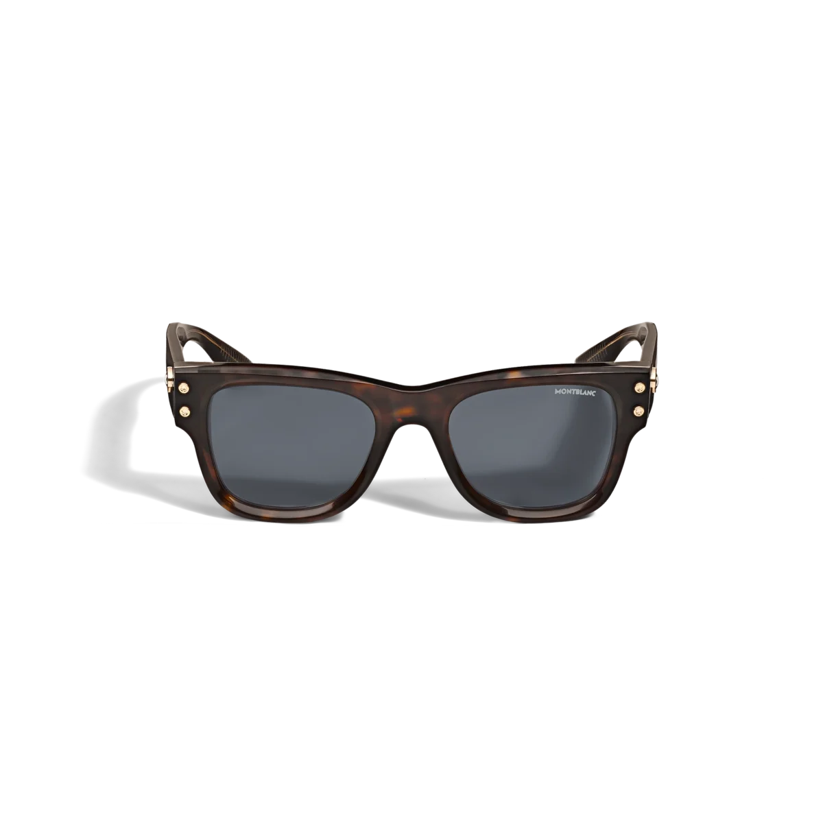Entdecken Sie alle Details der eckigen Sonnenbrille mit havannabraunem Acetatrahmen. Kaufen Sie online im offiziellen Montblanc Store.