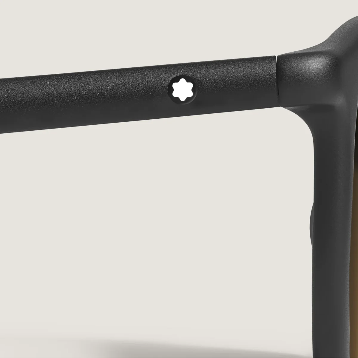 Entdecken Sie alle Details der eckigen Sonnenbrille mit schwarzem Acetatrahmen. Kaufen Sie online im offiziellen Montblanc Store.