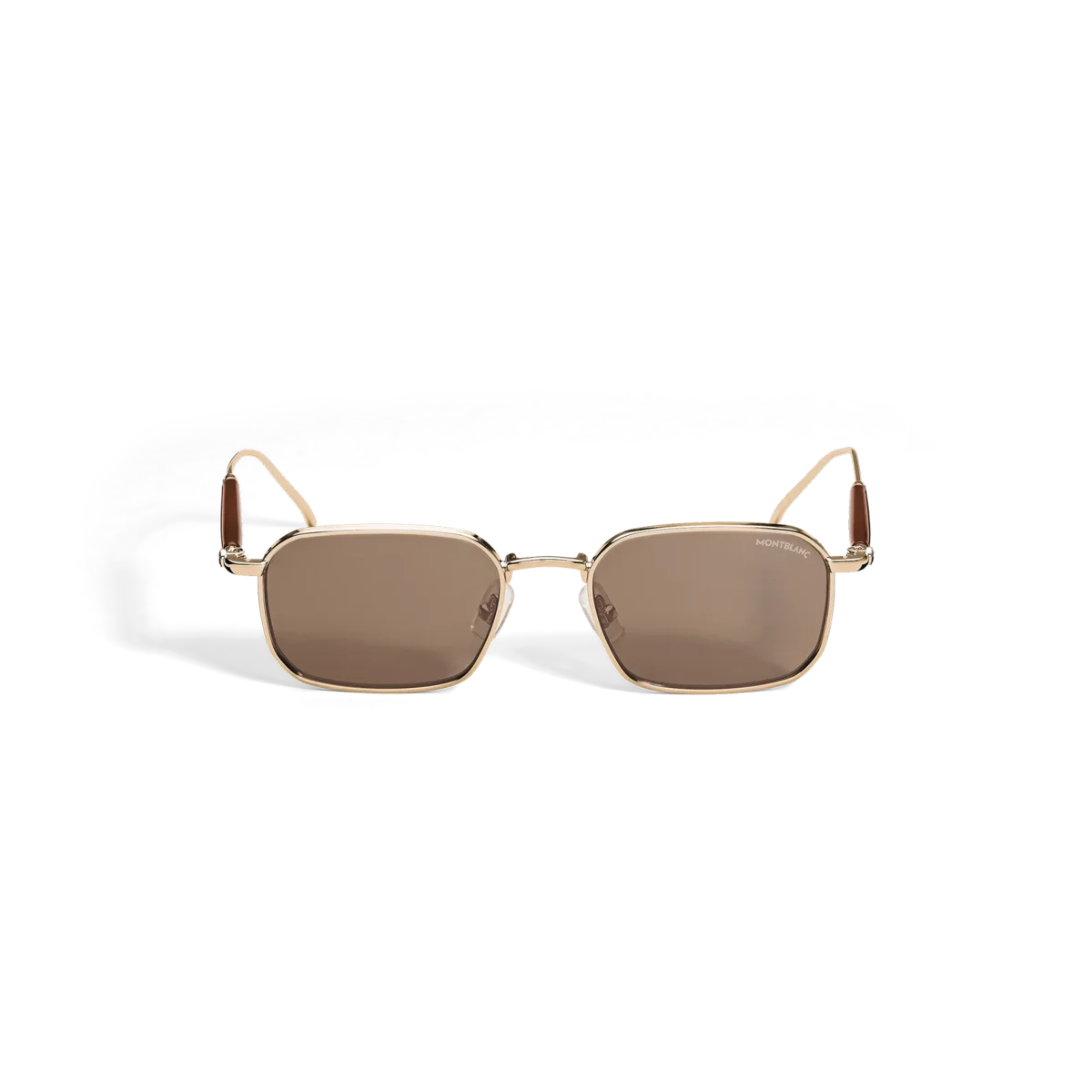 Entdecken Sie alle Details der rechteckigen Sonnenbrille mit goldfarbenem Metallrahmen. Kaufen Sie online im offiziellen Montblanc Store.