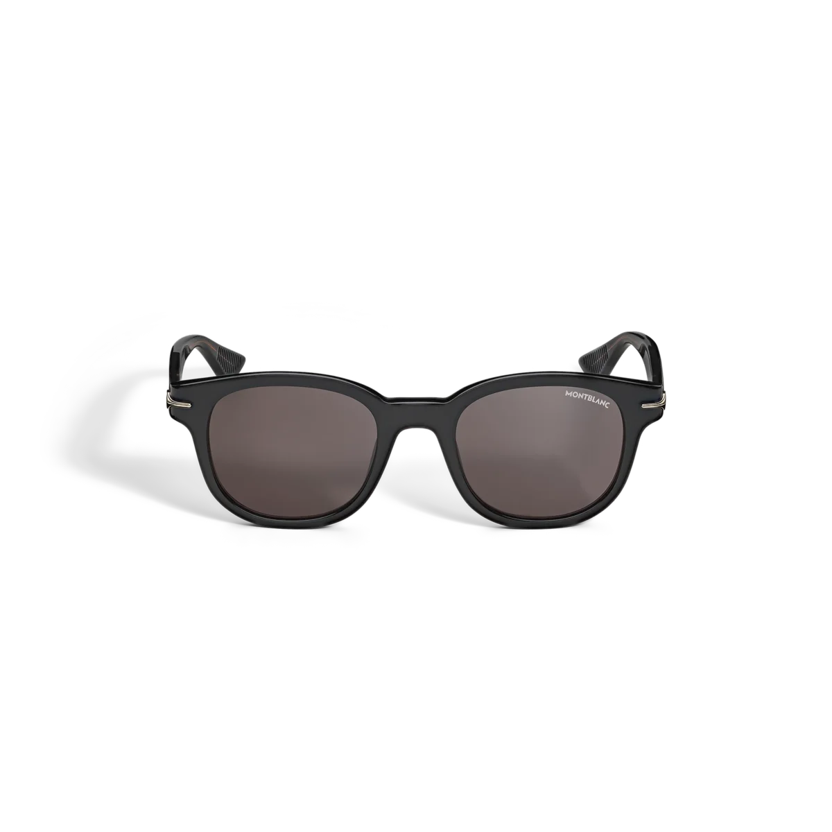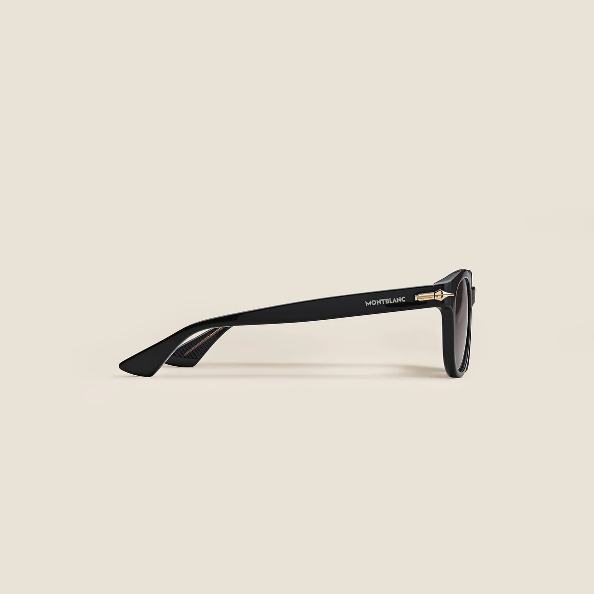 Entdecken Sie alle Details der runden Sonnenbrille mit schwarzem Acetatrahmen. Kaufen Sie online im offiziellen Montblanc Store.