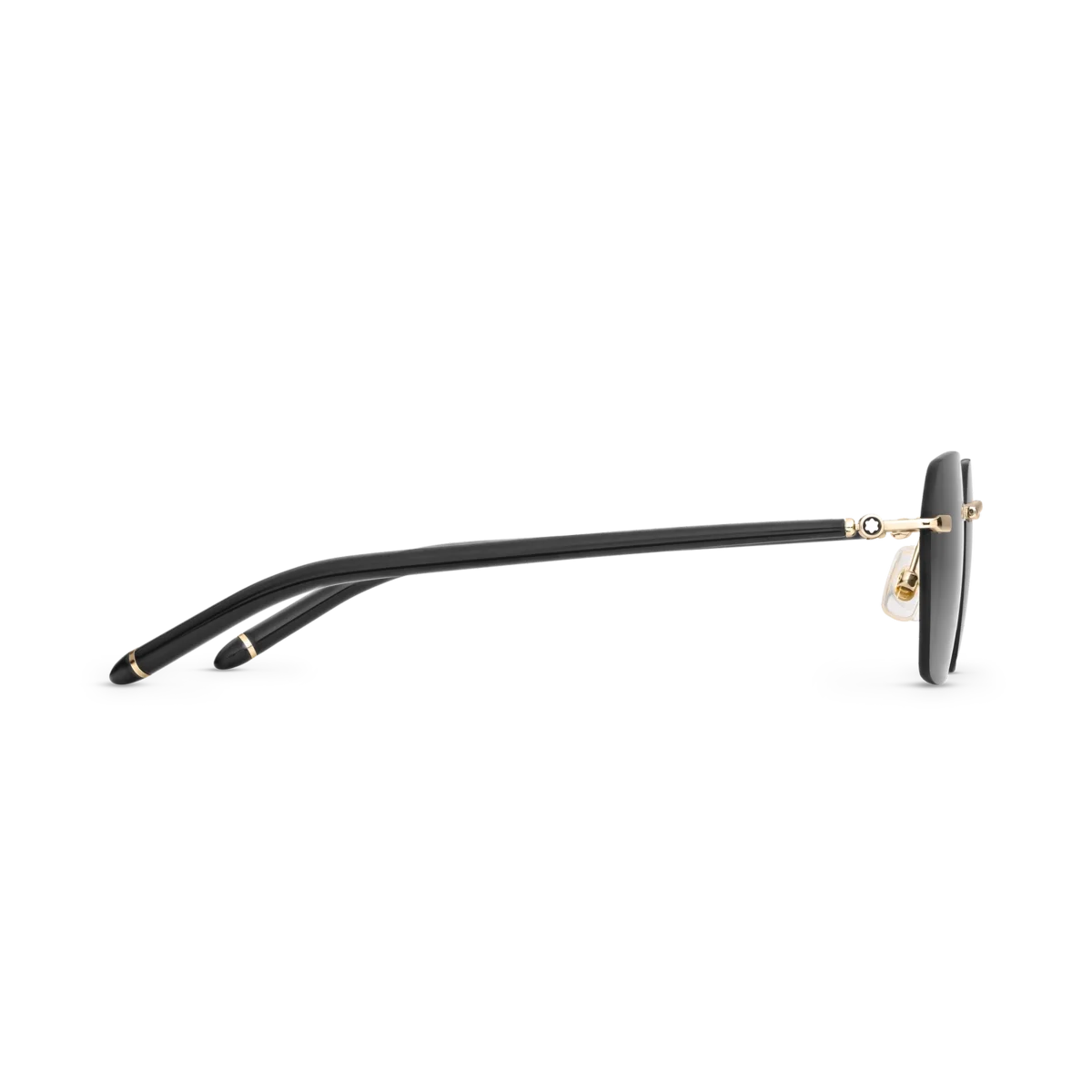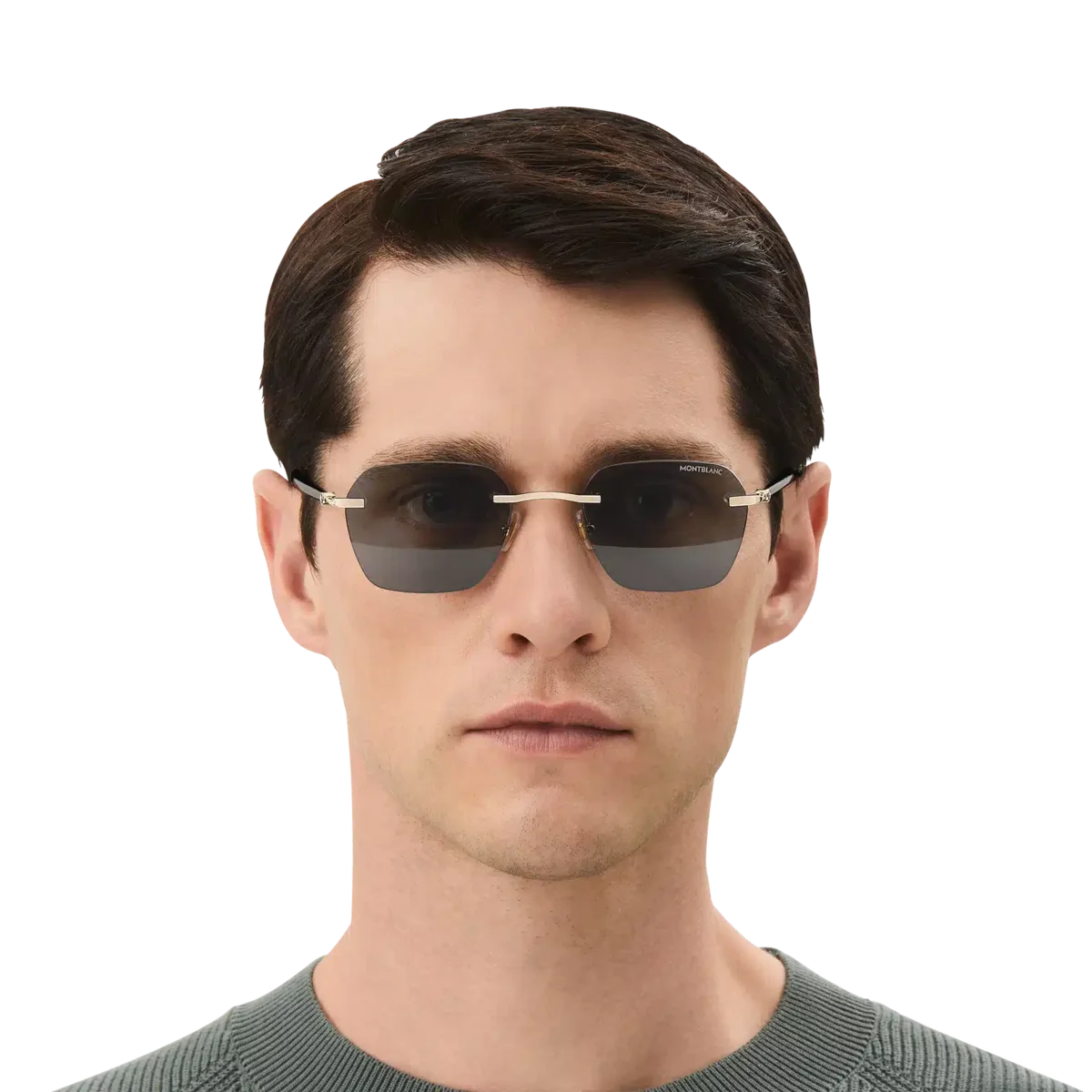 Diese leichte, randlose Sonnenbrille im eckigen Stil hat einen goldfarbenen Metallrahmen und graue Gläser. Der von den Meisterstück Schreibgeräten inspirierte Bügel ist mit einem 3-Ring-Detail verziert. Das Montblanc Logo ist auf das linke Glas gelasert und das Schneekappenlogo ist auf den Bügeln eingearbeitet. Das rutschfeste Muster ist auf die Innenseite der Bügelenden gelasert, um den Tragekomfort zu erhöhen.