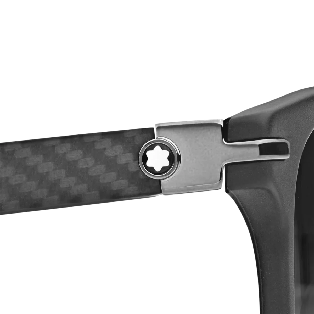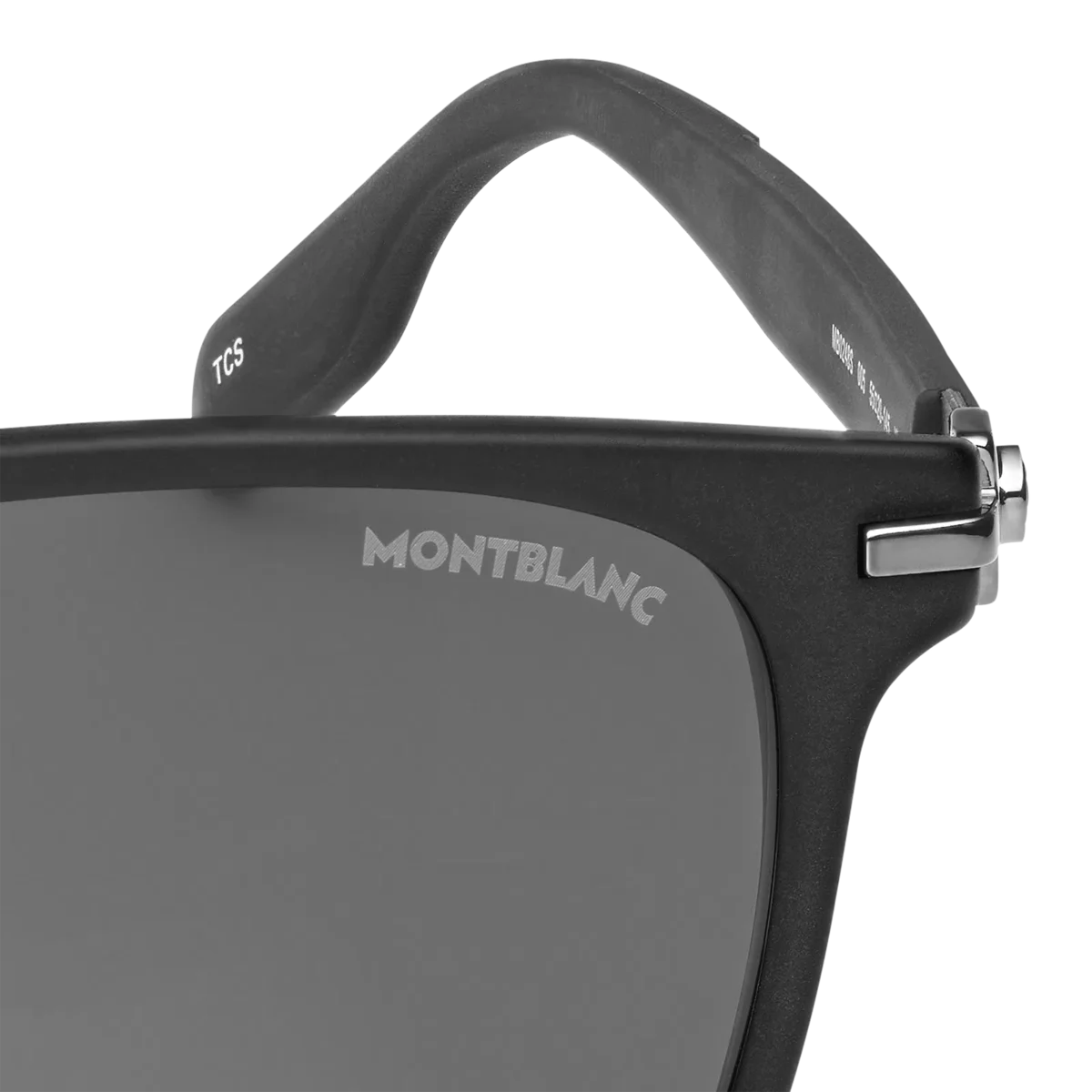 Entdecken Sie alle Details der eckigen Sonnenbrille mit schwarzem Acetatrahmen. Kaufen Sie online im offiziellen Montblanc Store.