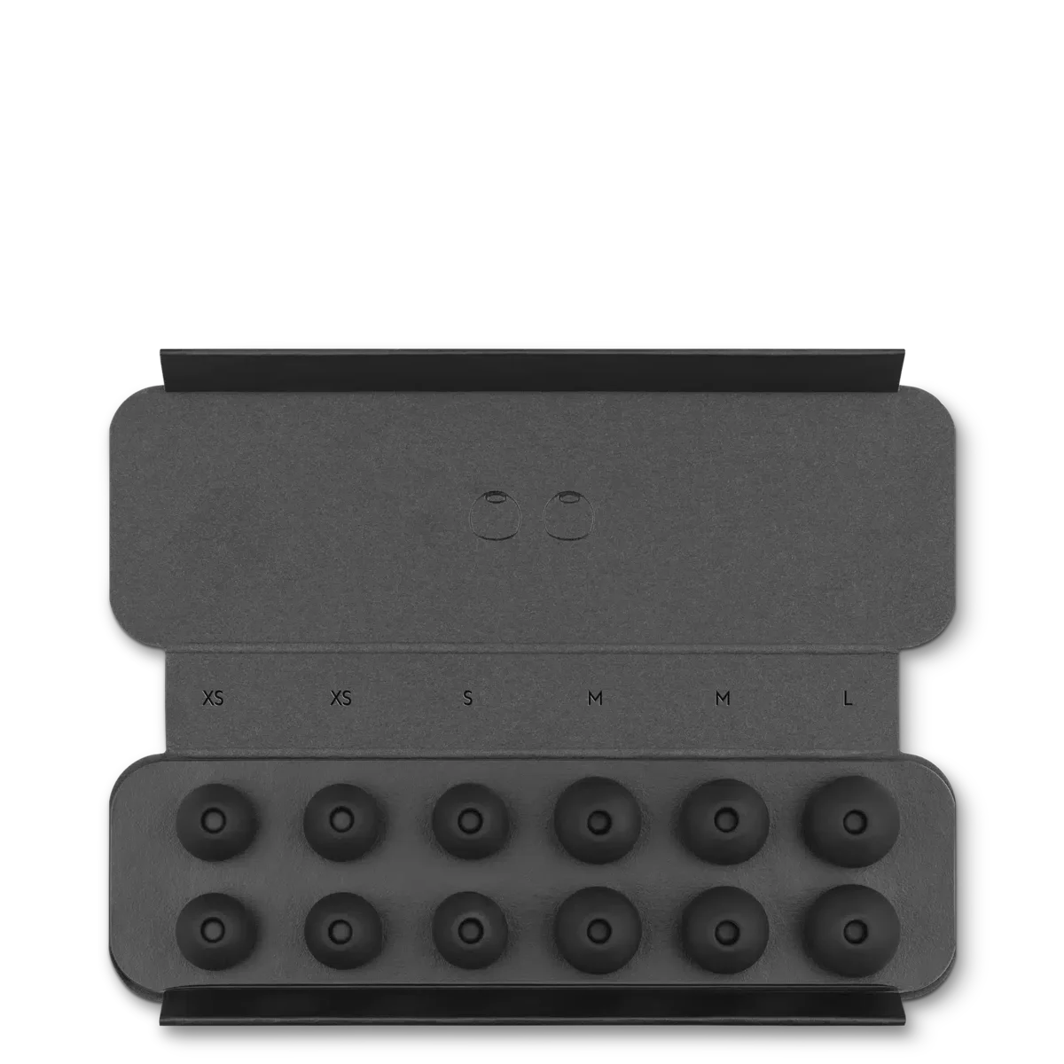 Set mit 6 Paar Silikon-Ohrstöpseln in verschiedenen Größen (XS, S, M, L).