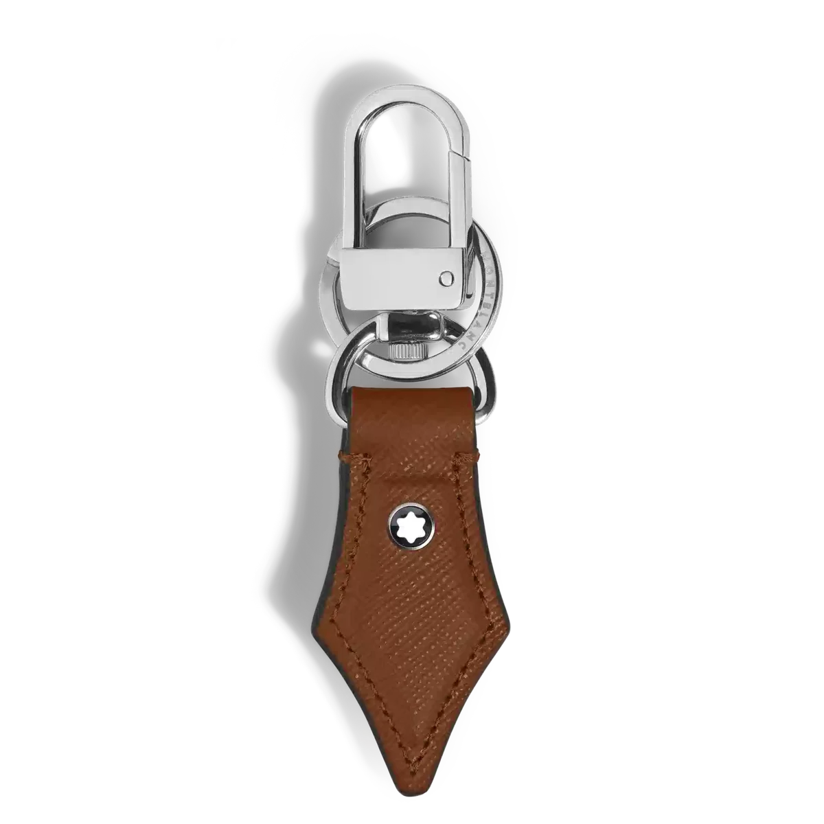 Der Montblanc Schlüsselanhänger aus geprägtem fauvefarbenem Leder ist eine subtile Hommage an die Kunst des Schreibens. Seine von einer Füllfederhalterspitze inspirierte Form spiegelt mit raffinierten Details das Erbe von Montblanc wider. Er ist auf Praktikabilität ausgelegt und verfügt über einen robusten Ring für mehrere Schlüssel sowie einen leicht zu befestigenden Haken zum Anbringen an Taschen. Ident-Nr. MB220359