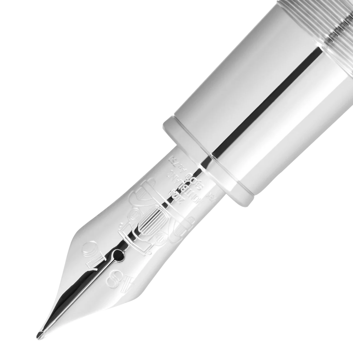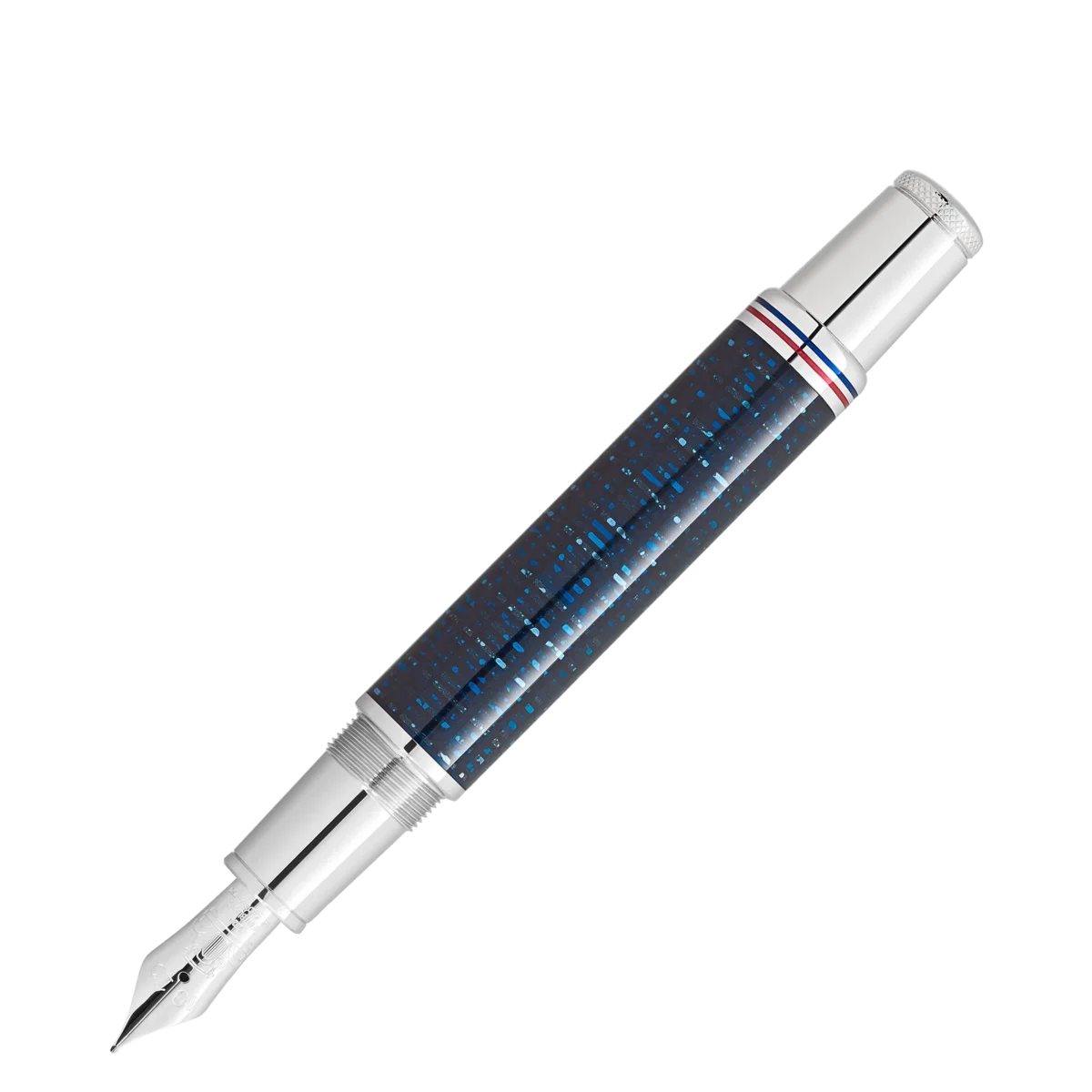 Bestimmte Romane gehen in die Literaturgeschichte ein und werden gleichzeitig zum Symbol einer ganzen Epoche. F. Scott Fitzgeralds „Der große Gatsby“ ist ein solches Juwel der modernen amerikanischen Literatur. Der 1925 veröffentlichte Roman zeichnet ein faszinierendes Bild des Jazz-Zeitalters und der „Roaring Twenties“, einer Zeit beispiellosen Reichtums und maßlosen Genusses. Das pulsierende New York City, die opulenten Villen von Long Island und die schillernden Partys der High Society bilden den Hintergrund für die Geschichte von Jay Gatsby, einem mysteriösen Millionär, der vor nichts zurückschreckt, um die Zuneigung seiner verlorenen Jugendliebe Daisy Buchanan zurückzugewinnen.Das schillernde New York der Gatsby-Ära, wo die funkelnden Art-déco-Wolkenkratzer am blauen Abendhimmel das Design der Sonderedition „Great Characters Homage to The Great Gatsby“ inspirierten. Als Hommage an ein frühes Montblanc-Schreibgerät aus der Art-déco-Ära scheint die Oberfläche des Schafts, die mit einer speziellen Technik gefertigt wurde, die hell erleuchteten Fassaden der Hochhäuser der boomenden Stadt bei Nacht widerzuspiegeln. Das fluoreszierende Montblanc-Emblem auf der Kappe ist kein fiktives Element, sondern leuchtet tatsächlich wie das grüne Licht am Steg von Daisys Haus in „The Great Gatsby“. Es fängt tagsüber Licht ein und speichert es, sodass es im Dunkeln leuchtet. Die offensichtliche Macht des Geldes wird in dieser Edition durch den platinbeschichteten Clip symbolisiert, der die Form einer Geldklammer hat. Seine abgerundete Öffnung ziert das Monogramm von Jay Gatsby als rhombusförmiges, goldbeschichtetes Art-déco-Monogramm. Der Mythos des amerikanischen Traums und das Design der oft stilvollen Flachmänner der Art-Déco-Zeit werden durch den Kegel, der den gravierten Schraubverschluss eines Flachmanns imitiert, und die feinen Ringe in den Farben der amerikanischen Flagge, die ihn umgeben, aufgegriffen. Die Essenz des erfüllten amerikanischen Traums offenbart sich, wenn man die Kappe der Edition abnimmt und einen Blick auf die geprägte, rhodinierte Feder aus massivem 585er Gold wirft. Diese ist mit einem Bild von Jay Gatsbys prächtigen Auto verziert, das F. Scott Fitzgerald begeistert als „reichhaltige Cremefarbe, glänzend mit Nickel, … und mit einem Labyrinth aus Windschutzscheiben, die ein Dutzend Sonnen widerspiegeln” beschrieben hat.