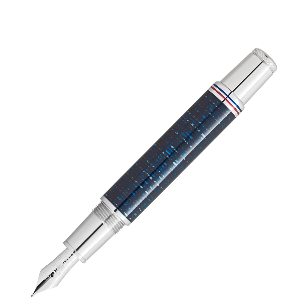 Bestimmte Romane gehen in die Literaturgeschichte ein und werden gleichzeitig zum Symbol einer ganzen Epoche. F. Scott Fitzgeralds „Der große Gatsby“ ist ein solches Juwel der modernen amerikanischen Literatur. Der 1925 veröffentlichte Roman zeichnet ein faszinierendes Bild des Jazz-Zeitalters und der „Roaring Twenties“, einer Zeit beispiellosen Wohlstands und maßloser Selbstverherrlichung. Das pulsierende New York City, die opulenten Villen von Long Island und die schillernden Partys der High Society bilden den Hintergrund für die Geschichte von Jay Gatsby, einem mysteriösen Millionär, der vor nichts zurückschreckt, um die Zuneigung seiner verlorenen Jugendliebe Daisy Buchanan zurückzugewinnen.Das schillernde New York der Gatsby-Ära, wo die funkelnden Art-déco-Wolkenkratzer am blauen Abendhimmel das Design der Sonderedition „Great Characters Homage to The Great Gatsby“ inspirierten. Als Hommage an ein frühes Montblanc-Schreibgerät aus der Art-déco-Ära scheint die Oberfläche des Schafts, die mit einer speziellen Technik gefertigt wurde, die hell erleuchteten Fassaden der Hochhäuser der boomenden Stadt bei Nacht widerzuspiegeln. Das fluoreszierende Montblanc-Emblem auf der Kappe ist kein fiktives Element, sondern leuchtet tatsächlich wie das grüne Licht am Steg von Daisys Haus in „The Great Gatsby“. Es fängt tagsüber Licht ein und speichert es, sodass es im Dunkeln leuchtet. Die offensichtliche Macht des Geldes wird in dieser Edition durch den platinbeschichteten Clip symbolisiert, der die Form einer Geldklammer hat. Seine abgerundete Öffnung ziert das Monogramm von Jay Gatsby als rhombusförmiges, goldbeschichtetes Art-déco-Monogramm. Der Mythos des amerikanischen Traums und das Design der oft stilvollen Flachmänner der Art-Déco-Zeit werden durch den Kegel, der den gravierten Schraubverschluss eines Flachmanns imitiert, und die feinen Ringe in den Farben der amerikanischen Flagge, die ihn umgeben, aufgegriffen. Die Essenz des erfüllten amerikanischen Traums offenbart sich, wenn man die Kappe der Edition abnimmt und einen Blick auf die geprägte, massive Au 585 rhodinierte Goldfeder wirft. Diese ist mit einem Bild von Jay Gatsbys prächtigen Auto verziert, das F. Scott Fitzgerald begeistert als „reichhaltige Cremefarbe, glänzend mit Nickel, … und mit einem Labyrinth aus Windschutzscheiben, die ein Dutzend Sonnen widerspiegeln” beschrieben hat.