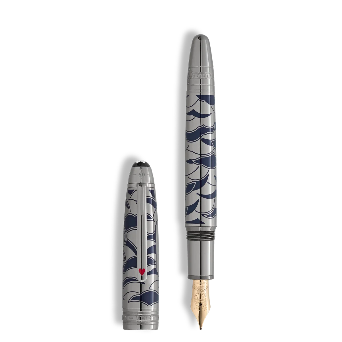 Die Meisterstück Around the World in 80 Days Kollektion ist von Jules Vernes berühmtem Abenteuerroman inspiriert. Der mit Edelmetall verzierte Solitaire LeGrand Füllfederhalter erzählt die epische Reise von Mr. Fogg und Passepartout. Auf der letzten Etappe von Yokohama zurück nach London über die Vereinigten Staaten durchqueren die beiden den riesigen amerikanischen Kontinent mit dem Zug. Entdecken Sie die filigranen Details – einen elegant auf die Kappe gelaserten Zug, ein Sicherheitskettenmuster auf dem Konus, das an den entscheidenden Moment erinnert, als Passepartout den Zug von der Lokomotive abkoppelt, um die von den Sioux angegriffene Besatzung zu retten.Das Design der Kappe und des Zylinders zeigt Druckventile und den aufsteigenden Rauch der Lokomotive, während der Clip mit einem rot lackierten Herzkarten-Symbol die Verbindung zwischen Phileas Fogg und Prinzessin Aouda symbolisiert. Darüber hinaus stehen die Kartensymbole für Foggs gewagte Wette, die Reise in nur 80 Tagen zu absolvieren. Auf der Oberseite der Kappe ist die Zeitachse der Reise eingeprägt – 36 Tage von Yokohama nach London, gipfelnd in insgesamt 80 Tagen um die Welt.Dieses Schreibgerät wird durch eine handgefertigte 18-Karat-Goldfeder mit den Markierungen 14/11 und 21/12 aufgewertet – eine Erinnerung an Mr. Foggs Abreise aus Yokohama am 14. November und seinen ehrgeizigen Plan, bis zum 21. Dezember in den Londoner Club zurückzukehren, um die Wette zu gewinnen. Zusätzlich ziert sie eine Darstellung eines Heißluftballons, eine Anspielung auf Jules Vernes ersten Abenteuerroman. Ident-Nr. MB132897 Physisches Gewicht 64,15 g Abmessungen 146,5 mm * 15,5 mm