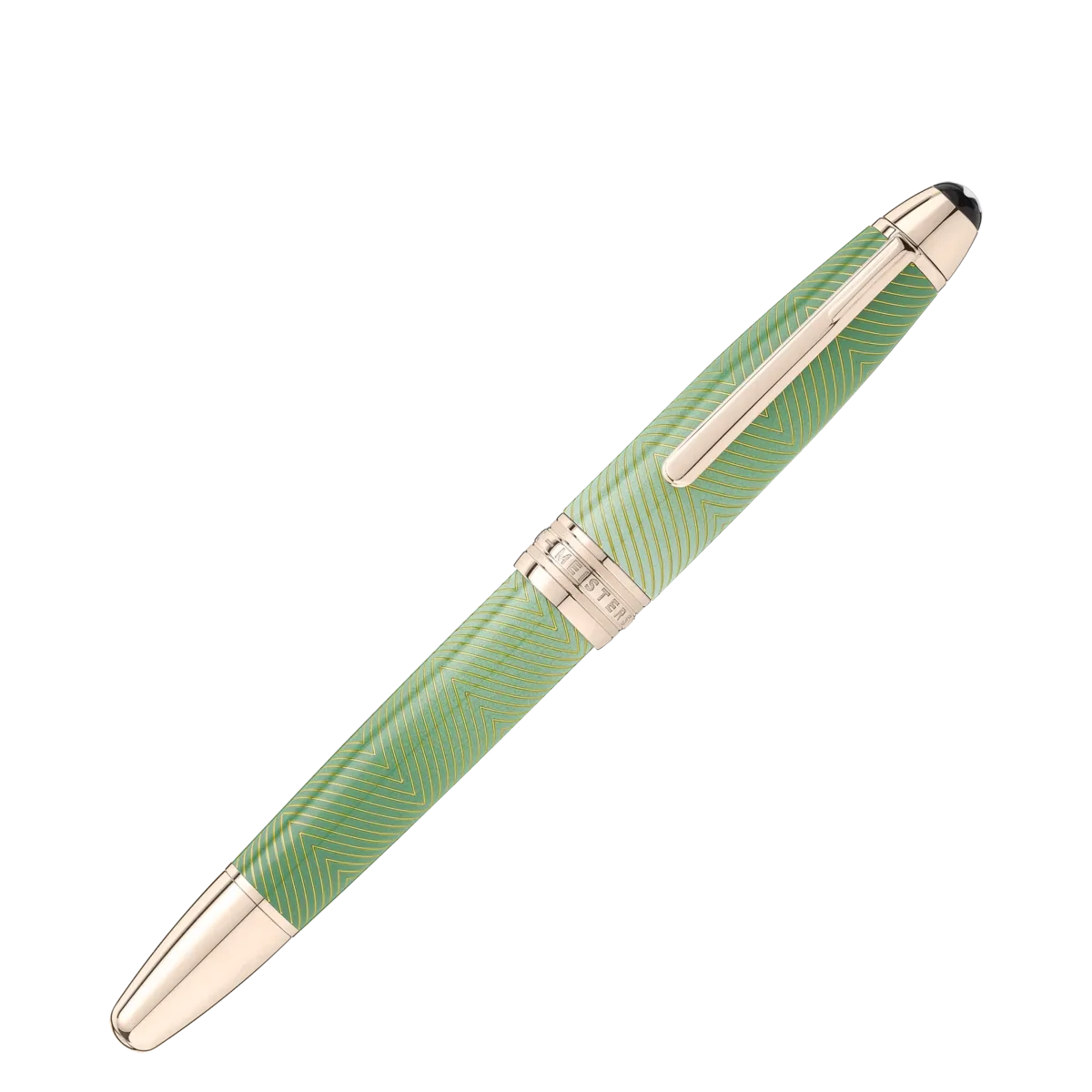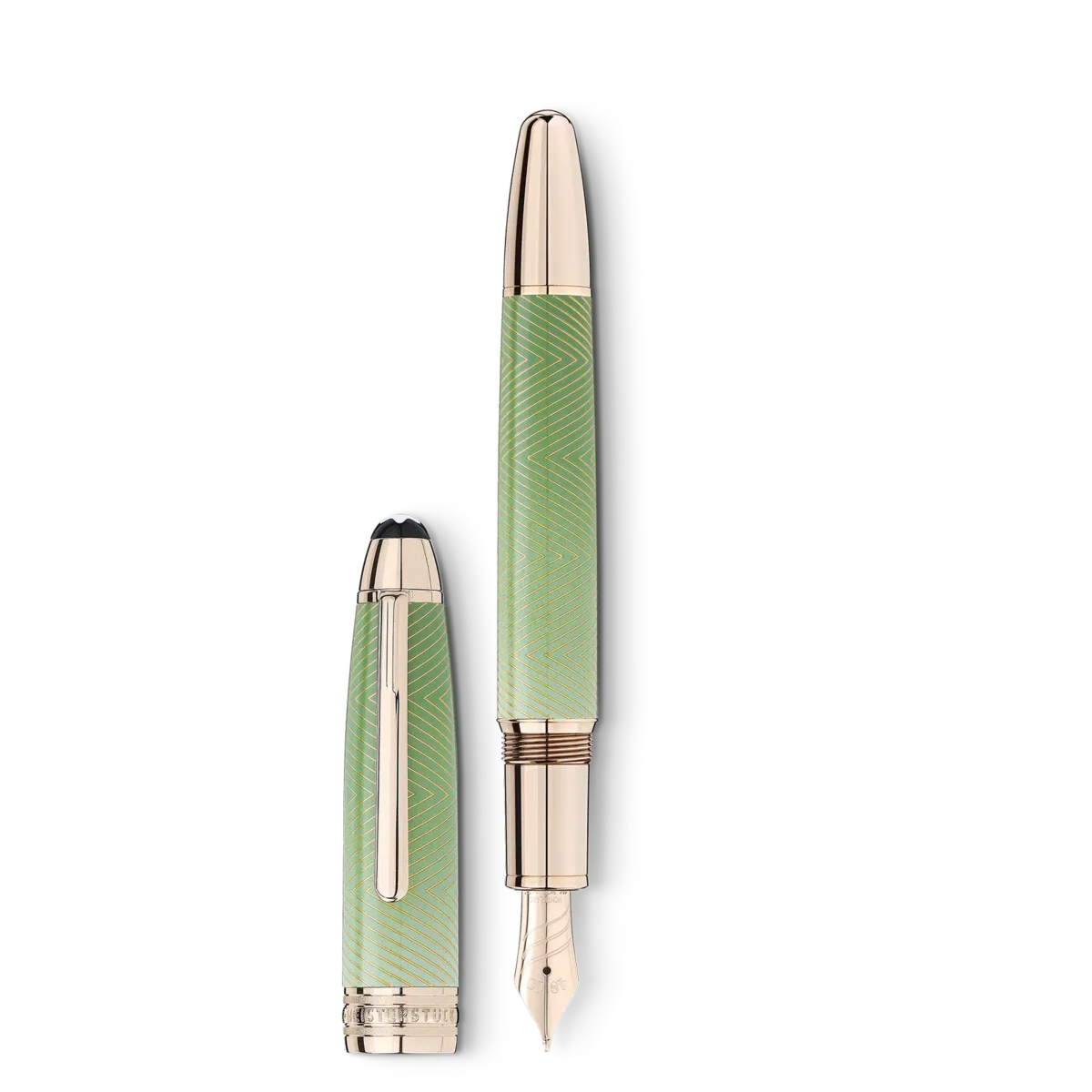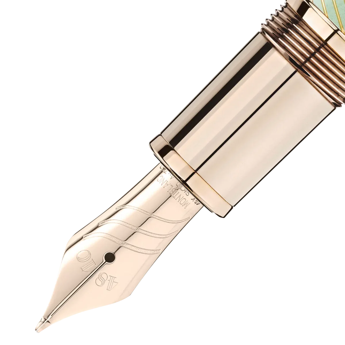 Der Meisterstück Calligraphy Solitaire Celadon Dégradé Füllfederhalter ist inspiriert von der Begegnung zwischen Kunst und Schrift. Dieses Stück ist eine zeitgenössische Hommage an einige der renommiertesten und zeitlosesten chinesischen Handwerkskünste: Celadon-Porzellan und Bambusflechterei. Das Schreibgerät in Celadon-farbenem Lack mit Farbverlauf wird durch den charakteristischen goldbeschichteten Clip und die Beschläge ergänzt. Der Füllfederhalter wird von der innovativen gebogenen Feder gekrönt, die aus 750er/18 Karat Massivgold handgefertigt und mit drei zarten parallelen Linien verziert ist – ein Symbol, das von den Bewegungen der Kalligraphie inspiriert ist. Die gebogene Feder ermöglicht je nach Winkel und Ausrichtung des Schreibgeräts eine Vielzahl von Schreibstilen und Strichstärken. Mit „Signature Gold“ und/oder „Signature Gold-Beschichtung“ beschreibt Montblanc den edlen Farbton von Gelbgold, der zu einem geschätzten Farbton für die Schreibgeräte des Hauses geworden ist.