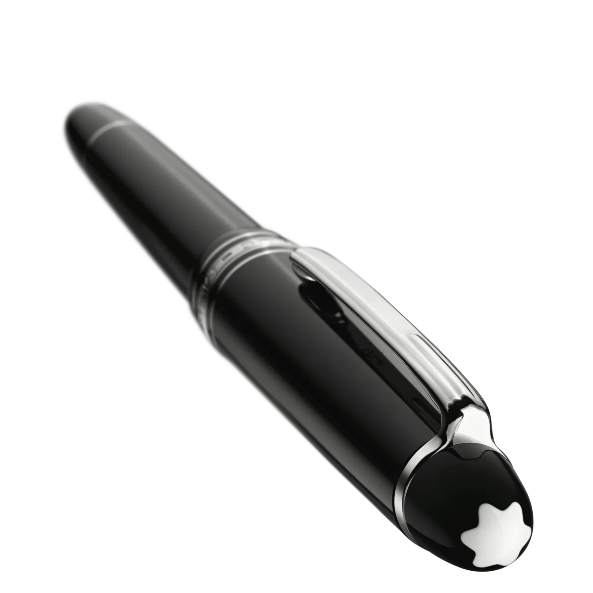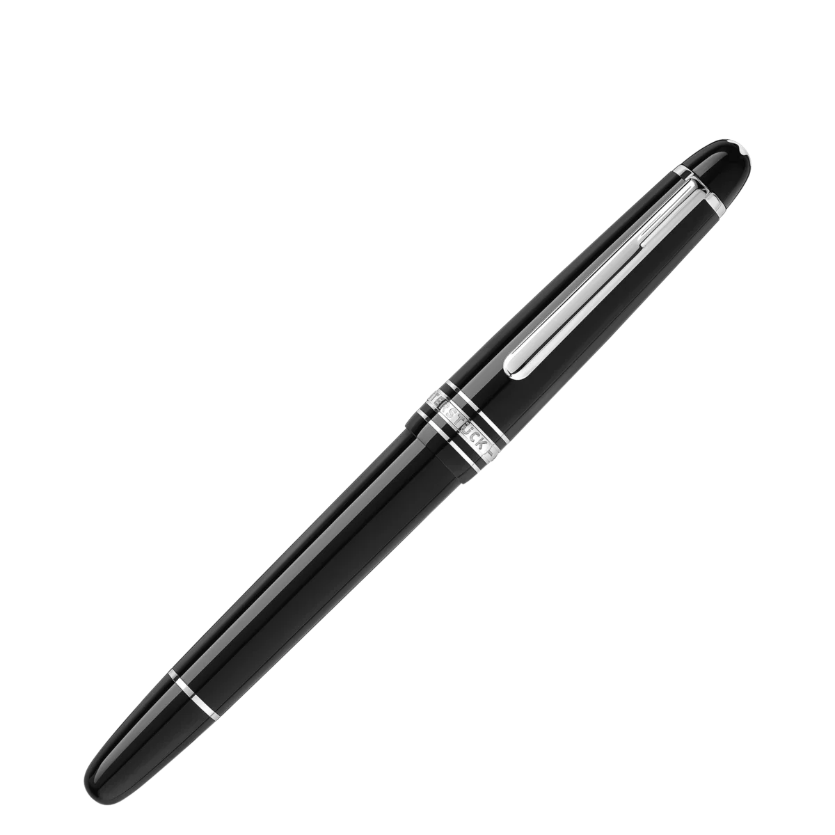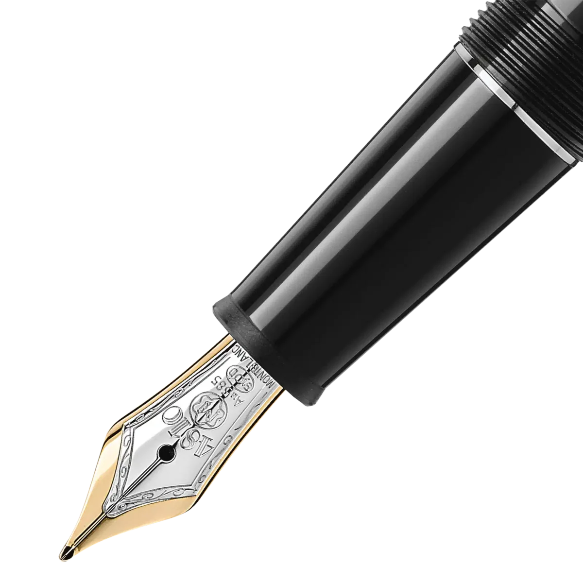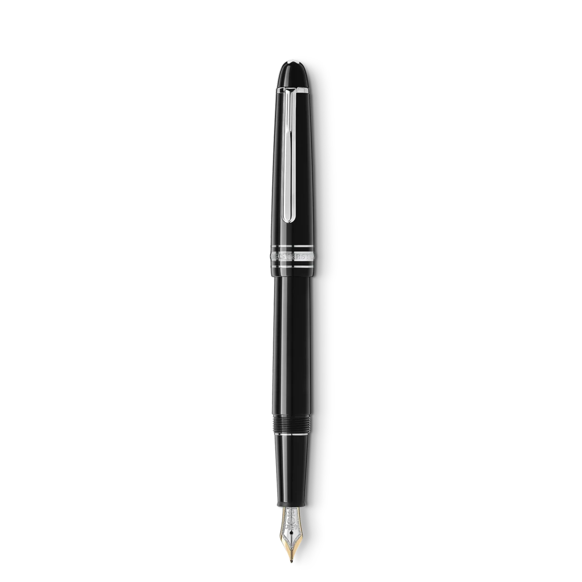 Der Meisterstück Classique Füllfederhalter entwickelt sich zu einer unverwechselbaren Designikone. Kappe und Schaft sind aus schwarzem Edelharz gefertigt und mit einem weißen Montblanc Emblem verziert. Drei platinbeschichtete Ringe mit geprägtem Montblanc Schriftzug, ein platinbeschichteter Clip und eine handgefertigte Goldfeder unterstreichen das zeitlose Design dieses ikonischen Füllfederhalters. Um Ihre Persönlichkeit zum Ausdruck zu bringen, bietet Montblanc eine kostenlose Gravur von Namen oder Initialen an.