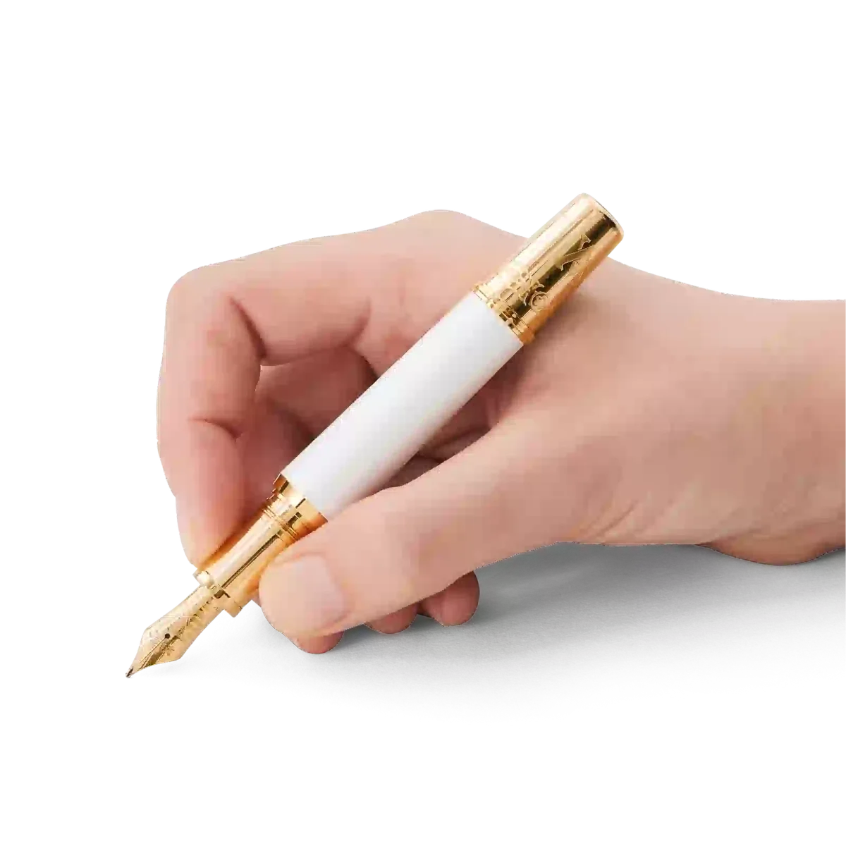 Die Montblanc Patron of Art Edition 2022 ist Königin Victoria und Prinz Albert gewidmet. Die Limited Edition 4810 ist eine bemerkenswerte Paar-Edition, wobei eine Edition Königin Victoria und die andere ihren Gemahl Prinz Albert ehrt. Der Montblanc Patron of Art Homage to Albert Limited Edition 4810 zelebriert den jungen Albert und verfügt über einen perlweiß lackierten Schaft sowie eine Kappe aus transluzentem Lack in Burgundertönen mit einem besonderen Muster auf der Unterseite. Die Beschläge sind charakteristisch vergoldet. Die Form des Clips ist eine Hommage an das Zepter seiner Frau und mit einem roten Kunststein verziert. Die Kappe ist von der Kuppel des Crystal Palace inspiriert und mit dem Montblanc Emblem aus weißem Edelharz verziert. Während der Kappenring mit dem eingravierten Zitat „treu und fest” versehen ist, ziert eine besondere Gravur den Konus. Als Hommage an sein persönliches Wappen trägt die handgefertigte Feder aus massivem 750er/18 Karat Gold eine Prägung, die vom Wappen Sachsens inspiriert ist. Mit „Signature Gold“ und/oder „Signature Gold-Beschichtung“ beschreibt Montblanc den edlen Farbton von Gelbgold, der zu einem geschätzten Farbton für die Schreibgeräte des Hauses geworden ist.