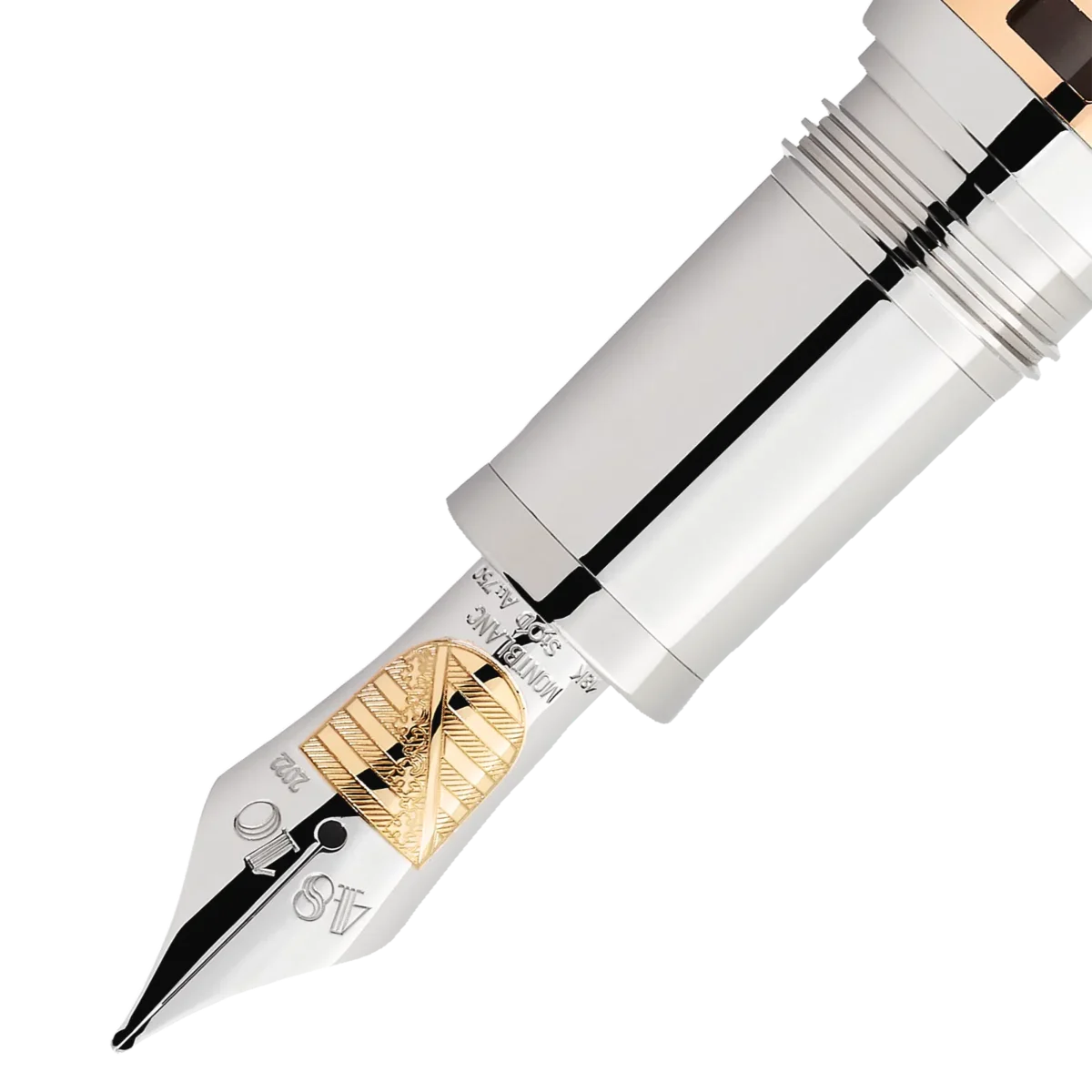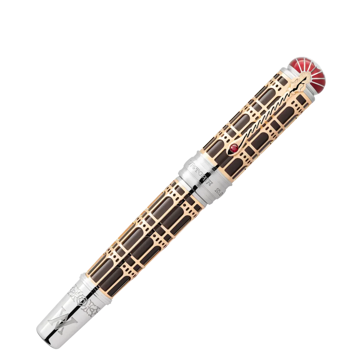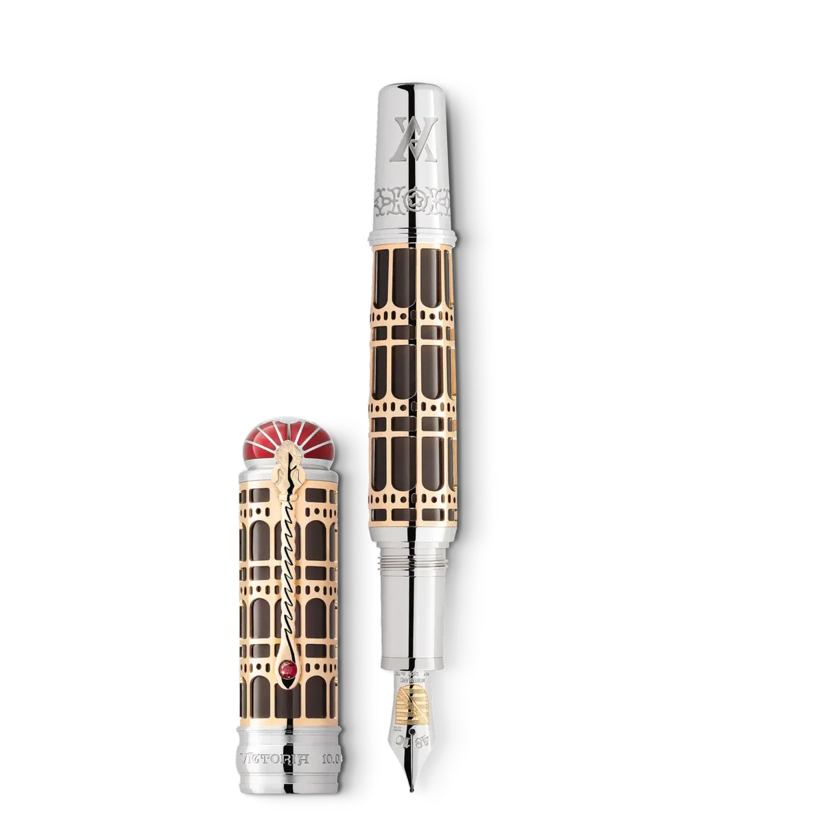 Die Montblanc Patron of Art Edition 2022 ist Königin Victoria und Prinz Albert gewidmet. Die Limited Edition 888 ist eine bemerkenswerte Paar-Edition, wobei eine Edition Königin Victoria und die andere ihren Gemahl Prinz Albert ehrt. Der Montblanc Patron of Art Homage to Albert Limited Edition 888 würdigt Prinz Albert und seine großen Leistungen. Der Füllfederhalter verfügt über eine Kappe und einen Schaft aus grauem, transluzentem Lack und eine solide Au 750 Signature Gold-Skelettüberzug. Das Skelett ist vom Crystal Palace inspiriert, den Albert erbaute und in dem er 1851 die „Great Exhibition” veranstaltete. Die graue Farbe ist eine Hommage an den Tartan, den Albert selbst für Balmoral Castle in Schottland entworfen hatte. Die Beschläge sind platinbeschichtet. Die Form des Clips ist eine Hommage an das Zepter seiner Frau und mit einem roten Granat verziert. Die Kappe ist von der Kuppel des Crystal Palace inspiriert und mit dem Montblanc Emblem aus Perlmutt verziert. Während der Kappenring wie ein Ehering die Gravur „Albert” und ihr Hochzeitsdatum trägt, ziert eine besondere Gravur den Konus. Als Hommage an sein persönliches Wappen trägt die handgefertigte, zweifarbige Feder aus massivem 750er Gold eine Prägung, die vom Wappen Sachsens inspiriert ist. Mit „Signature Gold” und/oder „Signature Gold-Beschichtung” beschreibt Montblanc den edlen Farbton von Gelbgold, der zu einem geschätzten Farbton für die Schreibgeräte des Hauses geworden ist.