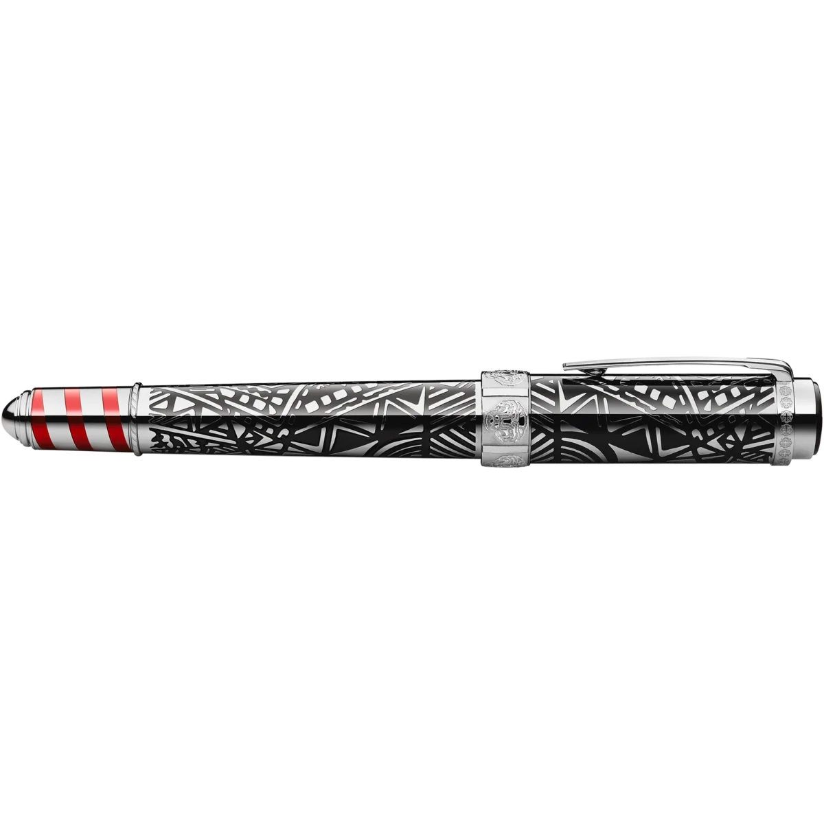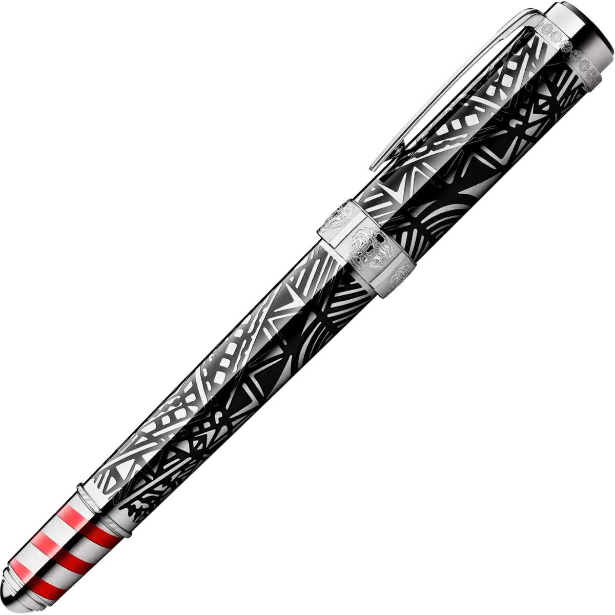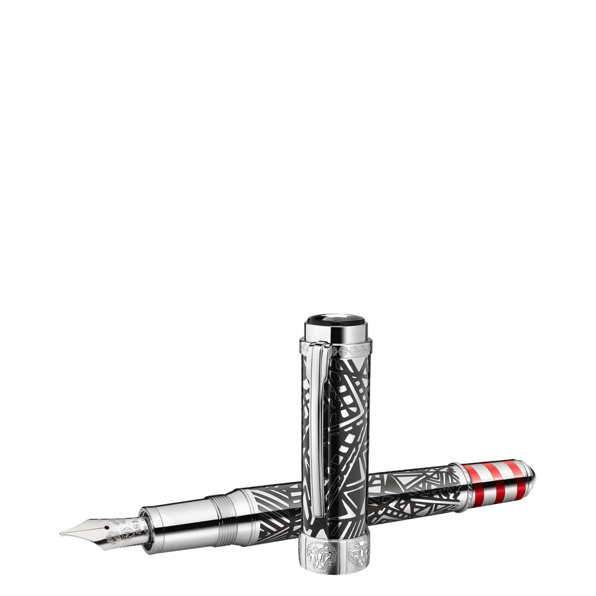 Peggy Guggenheim war eine der einflussreichsten amerikanischen Sammlerinnen und Ausstellerinnen zeitgenössischer Kunst. Zahlreiche junge Künstler wie Salvador Dalí, Pablo Picasso und Jackson Pollock, deren Werke Peggy Guggenheim in Europa und Amerika zeigte, verdankten ihr ihren frühen Erfolg. Das lineare Design von Clip und Kappe sowie die Linien und Formen der schwarzen Lackeinlagen in der platinbeschichteten Kappe und dem Schaft sind von Art-Déco-Werken aus ihrer Sammlung inspiriert. Die rote Lackeinlage in Form einer Spirale auf dem Konus steht für die gestreiften Anlegepfähle, die die venezianischen Wasserstraßen säumen. Die auf dem Kappenring eingeprägten Löwenköpfe verweisen auf Peggy Guggenheims venezianischen Palast, den Palazzo Venier dei Leoni, sowie auf den Löwen des Heiligen Markus, das Symbol Venedigs.