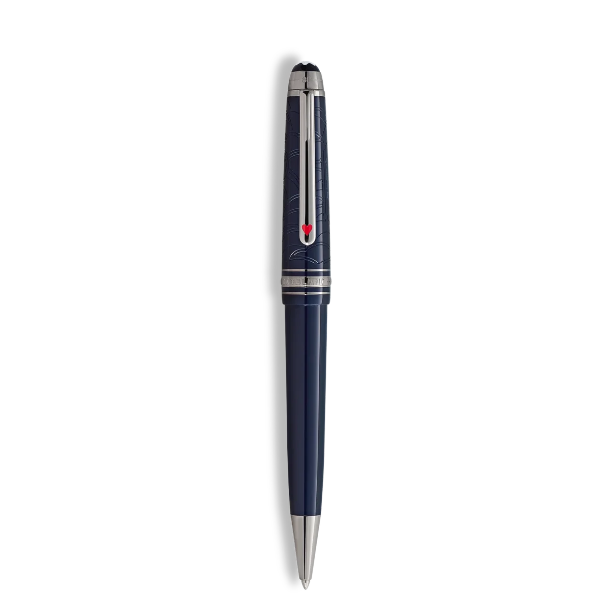 Die Meisterstück Around the World in 80 Days Kollektion ist von Jules Vernes berühmtem Abenteuerroman inspiriert. Der Classique Kugelschreiber aus dunkelblauem Edelharz erzählt die epische Reise von Mr. Fogg und Passepartout. Auf der letzten Etappe von Yokohama zurück nach London über die Vereinigten Staaten durchqueren die beiden den riesigen amerikanischen Kontinent mit dem Zug. Entdecken Sie die filigranen Details – einen elegant auf die Kappe gelaserten Zug, ein Sicherheitskettenmuster auf dem Konus, das an den entscheidenden Moment erinnert, als Passepartout den Zug von der Lokomotive abkoppelt, um die von den Sioux angegriffene Besatzung zu retten.Das Design der Kappe zeigt Druckventile und den aufsteigenden Rauch der Lokomotive, während der Clip mit einer rot lackierten Herzkarte verziert ist, die die Verbindung zwischen Phileas Fogg und Prinzessin Aouda symbolisiert. Darüber hinaus stehen die Kartenfarben für Foggs gewagte Wette, die Reise in nur 80 Tagen zu absolvieren. Auf der Oberseite der Kappe ist die Zeitachse der Reise eingeprägt – 36 Tage von Yokohama nach London, gipfelnd in insgesamt 80 Tagen um die Welt.