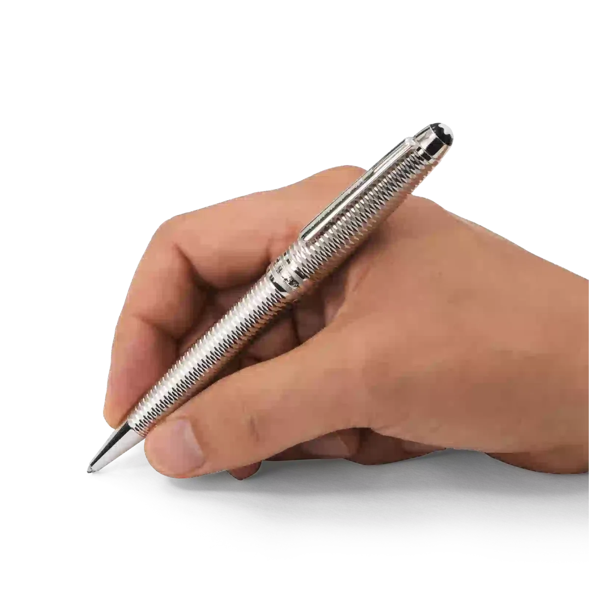 Der Meisterstück Solitaire Geometric Dimension entstand aus dem Wunsch heraus, das klassische Design von Montblanc mit einzigartigen Materialien zu verbinden. Dieses Schreibgerät, das mit einem dreidimensionalen geometrischen Muster mit optischem Effekt in einem raffinierten Platin-Ton graviert ist, verfügt über einen platinbeschichteten Clip und drei platinbeschichtete Ringe, in die der Markenname Montblanc eingeprägt ist. Mit dem Montblanc Emblem versehen, spricht er die Individualität jedes Einzelnen an.