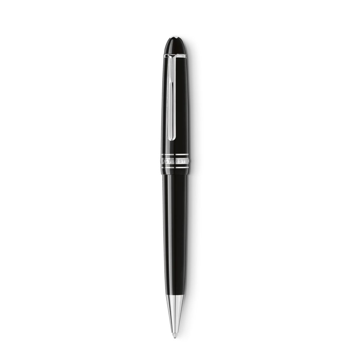 Der Meisterstück Midsize aus tiefschwarzem Edelharz mit eleganten platinbeschichteten Details und dem weißen Montblanc Emblem entwickelt sich zu einer unverwechselbaren Designikone. Seine Größe liegt zwischen den Kugelschreibern LeGrand und Classique.
