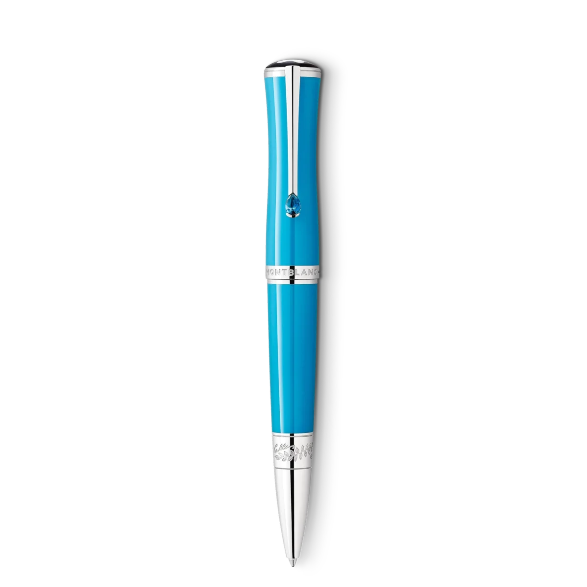 Der Montblanc Maria Callas Special Edition Turquoise-Coloured ist einer der charismatischsten Sopranistinnen des 20. Jahrhunderts und einer geschätzten Stilikone gewidmet. Mit ihrem Talent, ihrer Leidenschaft und ihrer Persönlichkeit verkörperte sie ein bestimmtes Ideal der Operndiva. In einigen der größten Opernhäuser der Welt, von der Mailänder Scala über die Pariser Oper bis hin zur New Yorker Metropolitan Opera, war sie als „La Divina” – die Göttliche – bekannt. Die Edition hebt eine ihrer Lieblingsfarben, Türkis, im kostbaren Harz der Kappe und des Schafts hervor und spiegelt gleichzeitig Maria Callas‘ anmutige Schönheit in ihrer schlanken, eleganten Silhouette wider. In Erinnerung an ihre vom Meer umgebene griechische Heimat ist der platinbeschichtete Clip mit einem synthetischen Stein verziert, dessen Farbe an das strahlende Türkisblau der Ägäis erinnert. Ein Kostümdetail aus einer ihrer bekanntesten Belcanto-Rollen, Bellinis „Norma”, spiegelt sich in einem Muster aus Lorbeerblättern wider, das den platinbeschichteten Kegel der Edition umgibt, zusammen mit der geprägten Signatur der berühmten Sopranistin.