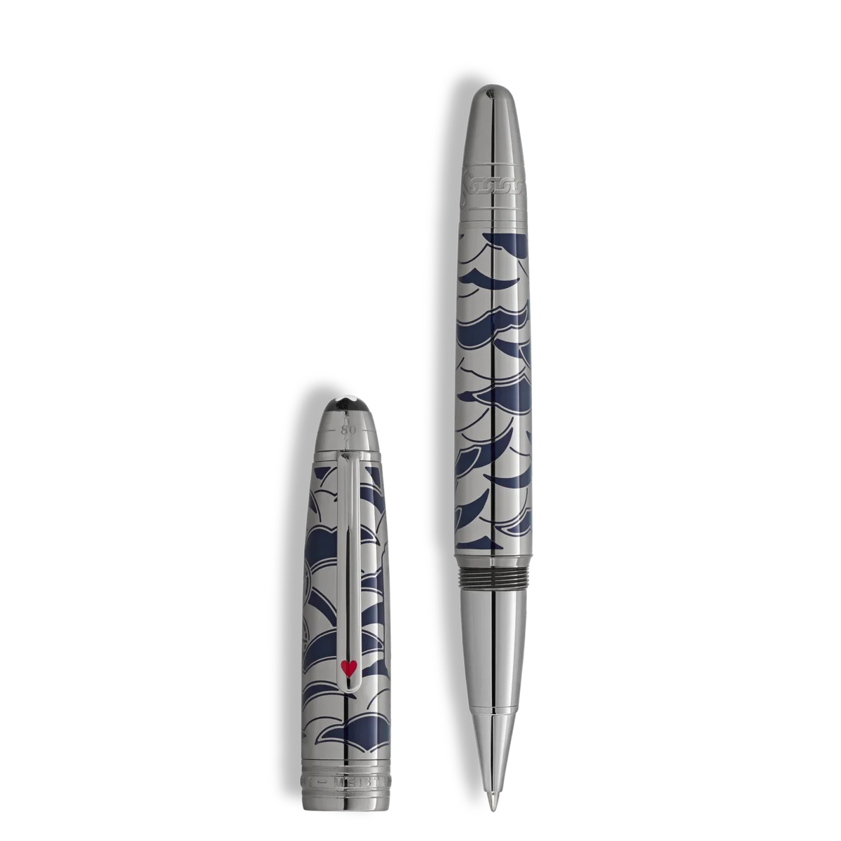 Die Meisterstück Around the World in 80 Days Kollektion ist von Jules Vernes berühmtem Abenteuerroman inspiriert. Der mit Edelmetall verzierte Solitaire LeGrand Rollerball erzählt die epische Reise von Mr. Fogg und Passepartout. Auf der letzten Etappe von Yokohama zurück nach London über die Vereinigten Staaten durchqueren die beiden den riesigen amerikanischen Kontinent mit dem Zug. Entdecken Sie die filigranen Details – einen elegant auf die Kappe gelaserten Zug, ein Sicherheitskettenmuster auf dem Konus, das an den entscheidenden Moment erinnert, als Passepartout den Zug von der Lokomotive abkoppelt, um die von den Sioux angegriffene Besatzung zu retten.Das Design der Kappe und des Zylinders zeigt Druckventile und den aufsteigenden Rauch der Lokomotive, während der Clip mit einem rot lackierten Herzkarten-Symbol die Verbindung zwischen Phileas Fogg und Prinzessin Aouda symbolisiert. Darüber hinaus stehen die Kartensymbole für Foggs gewagte Wette, die Reise in nur 80 Tagen zu absolvieren. Auf der Oberseite der Kappe ist die Zeitachse der Reise eingeprägt – 36 Tage von Yokohama nach London, gipfelnd in insgesamt 80 Tagen um die Welt.