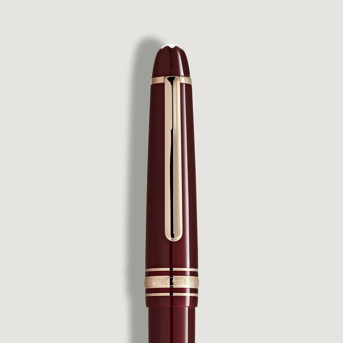 Das zeitlose Design des Montblanc Meisterstück Classique Burgundy Red spiegelt die Geschichte des Hauses wider, in der Burgunderrot seit den 1920er Jahren eine wichtige Rolle spielt. Seitdem ist diese Farbe ein fester Bestandteil des Erbes von Montblanc geblieben. Die Kappe und der Schaft des Meisterstück Burgundy Red Füllfederhalters sind aus burgunderrotem Edelharz mit charakteristischen Goldbeschlägen gefertigt und mit dem ikonischen weißen Montblanc-Emblem auf der Kappenspitze verziert. Das Schreibgerät ist mit einer handgefertigten Feder aus 585er/14 Karat Massivgold mit charakteristischer Goldbeschichtung verziert. Mit „charakteristischem Gold” beschreibt Montblanc den edlen Farbton von Gelbgold, der zu einem geschätzten Farbton für die Schreibgeräte des Hauses geworden ist.