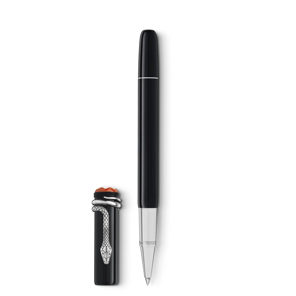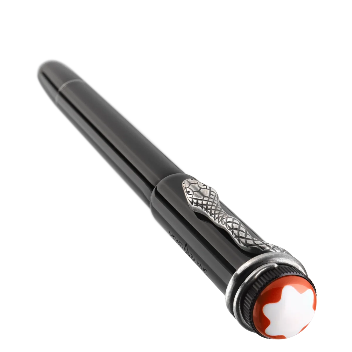 Als er 1906 entwickelt wurde, galt der Füllfederhalter „Rouge et Noir” als herausragende technische Errungenschaft, da er eine einfache Handhabung ermöglichte, ohne dass die Feder in ein Tintenfass getaucht werden musste. Die Heritage Collection Rouge et Noir zelebriert den 110 Jahre alten Pioniergeist von Montblanc. Als Neuinterpretation des legendären Schreibgeräts zeichnet sie sich durch eine längere, schlankere Silhouette und über Generationen verfeinerte Handwerkskunst aus. Schlangenclip im Vintage-Look mit passenden Beschlägen. Der Clip wird in einem Stanz- und Wickelverfahren aus einer speziellen Metalllegierung hergestellt und durch einen einzigartigen galvanischen und Abbeizprozess gealtert. Ident-Nr. MB132109 Physikalisches Gewicht 155 g Abmessungen 136 mm * 16 mm
