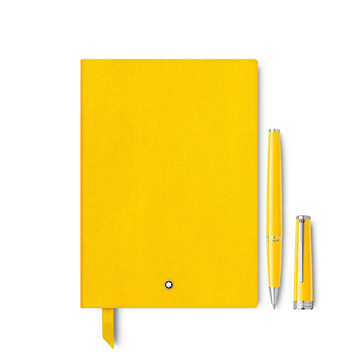 Das Set enthält einen PIX Rollerball Yellow & Notizbuch #146 Yellow. Der Rollerball ist aus edlem Harz gefertigt und mit platinbeschichteten Beschlägen versehen. Die Kappe ist mit einem weißen Montblanc Emblem gekrönt. Das Notizbuch #146 umfasst 96 Seiten aus liniertem Papier mit Wasserzeichen und silbernem Rand.