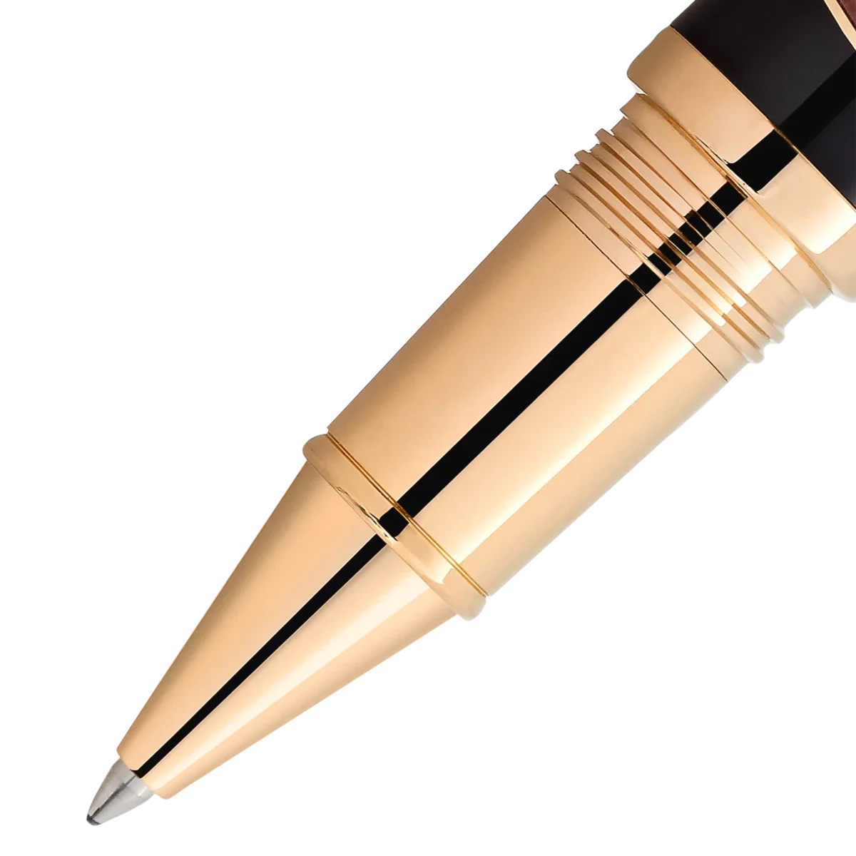 Robert Louis Stevenson, 1850 in Edinburgh, Schottland, geboren, hatte zwei große Wünsche: Freiheit und das Eintauchen in andere Welten. Er verfasste Essays und Reiseberichte sowie seine legendären Abenteuergeschichten, die von markanten Charakteren bevölkert sind, deren Namen den Lesern auf der ganzen Welt einen Schauer über den Rücken jagen: Long John Silver, Captain Flint, Jekyll und Hyde. Die Montblanc Writers Edition Homage to Robert Louis Stevenson ist diesem fantasievollen Geschichtenerzähler gewidmet. Der Roman „Die Schatzinsel“ inspirierte viele Designdetails der Edition. Die Gesamtform des Schreibgeräts und die Ringe auf dem Konus vermitteln den Eindruck eines historischen, ausziehbaren Fernrohrs.Diese Edition erzählt die Geschichte von „Die Schatzinsel“ nach und zeigt die berühmte Hispaniola auf dem Schaft, eingefasst in kostbaren schwarzen Lack. Die Hispaniola begibt sich auf eine Reise und hisst eine britische Flagge, die hinter einem kleinen Fenster zu sehen ist. In Anlehnung an die Handlung der Meuterei der Piraten kann die Flagge mit einem kleinen Knopf gedreht werden, um eine Piratenflagge zu enthüllen.Vertikale Linien, die an die Planken des Schoners „Hispaniola” und eine traditionelle Seekiste erinnern, zieren die charakteristische goldbeschichtete Kappe. Hinter dem charakteristischen goldbeschichteten Clip laufen die Linien in einer Kompassrose zusammen, während der Clip die Form eines Belaying-Pins imitiert, an dem die Leinen der Schiffstaue befestigt würden. Die Kappe wird von dem Montblanc Emblem aus Perlmutt gekrönt. Der Kappenring ist mit einer Gravur von Stevensons Unterschrift verziert. Mit „Signature Gold“ und/oder „Signature Goldbeschichtung“ beschreibt Montblanc den edlen Farbton von Gelbgold, der zu einem geschätzten Farbton für die Schreibgeräte des Hauses geworden ist.