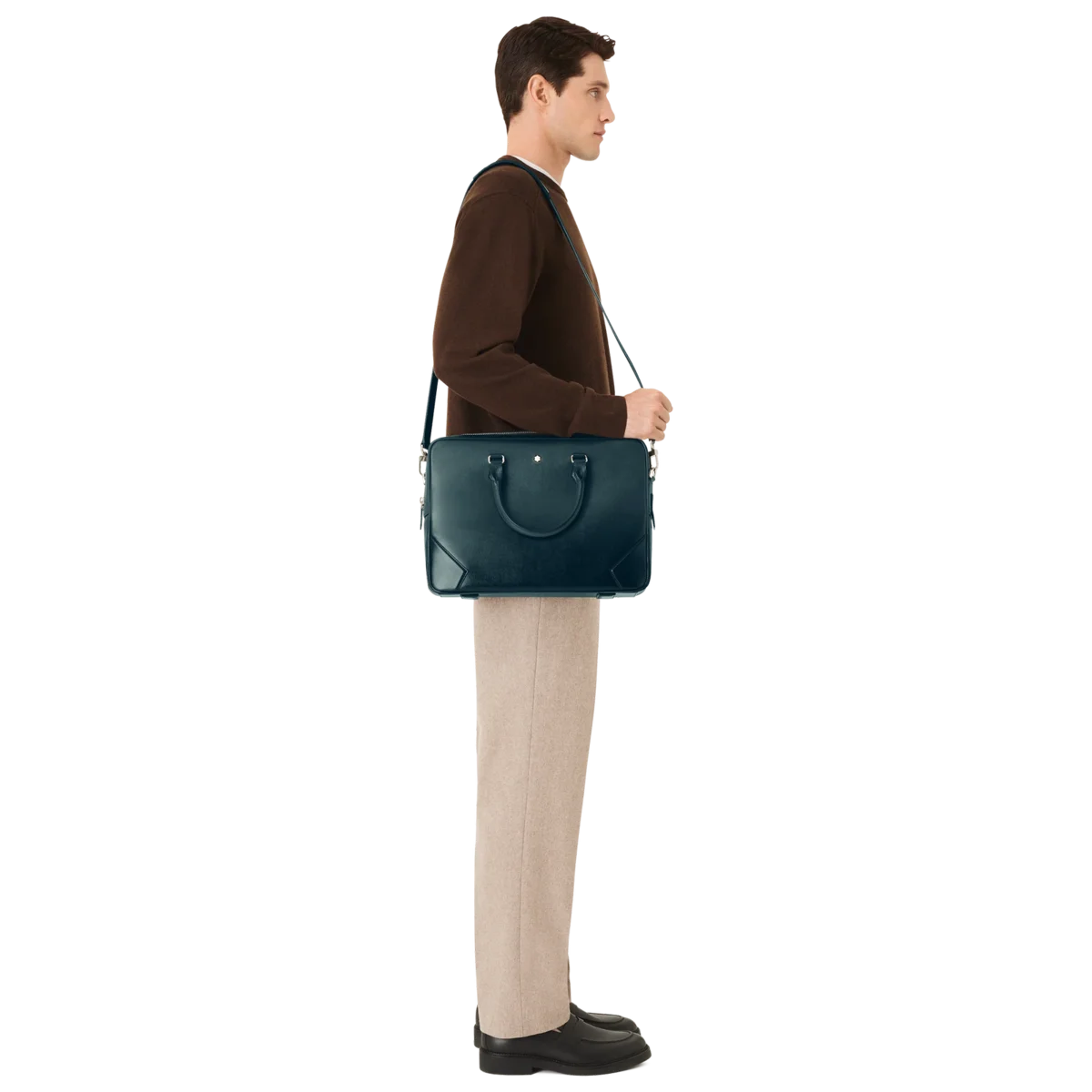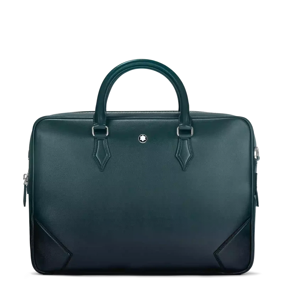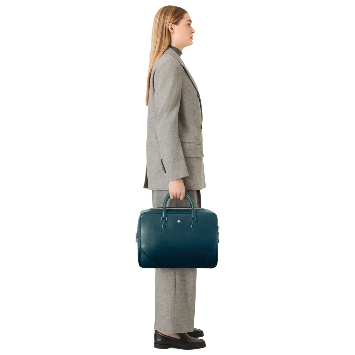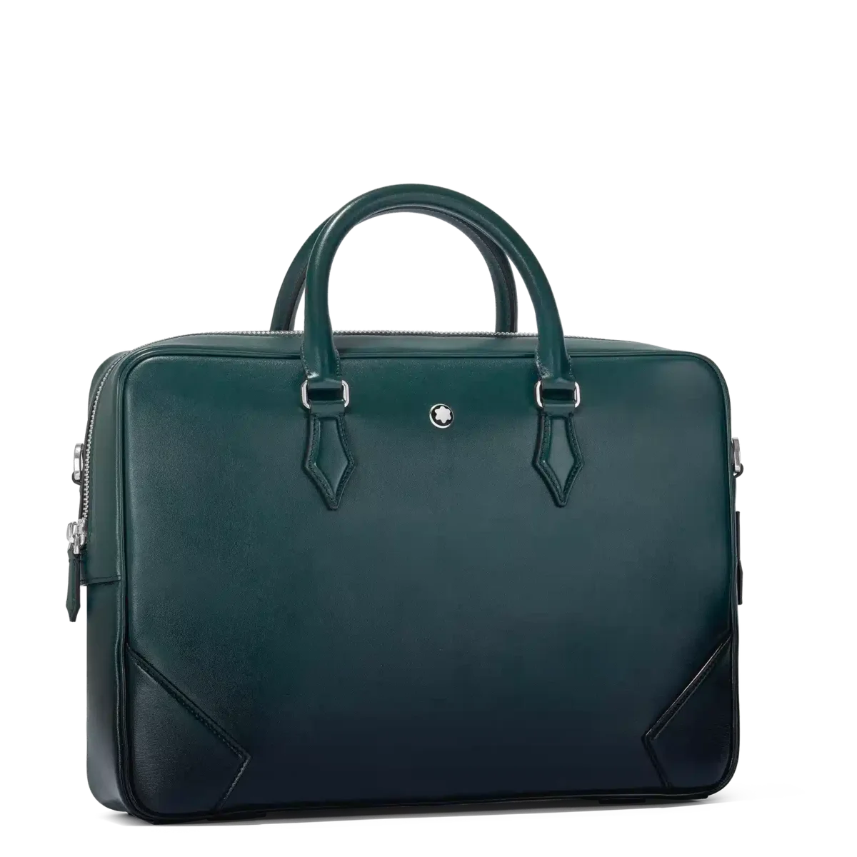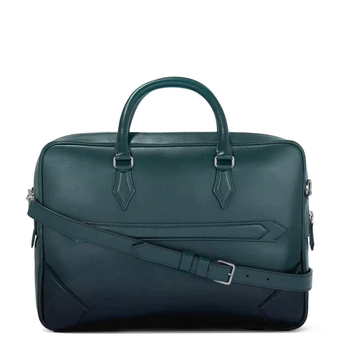 Erleben Sie den Inbegriff raffinierter Handwerkskunst mit unserer Meisterstück Dokumententasche, die Teil unserer exklusiven Kapselkollektion ist, mit der wir ein Jahrhundert Meisterstück-Handwerkskunst feiern. Diese elegante Tasche aus britischem grünem Leder mit Sfumato-Effekt verkörpert die Essenz von Montblanc. Inspiriert von der Feder, strahlen die Nähte, Reißverschlusszüge und Griffe Eleganz aus. Mit Ledergriffen, einem abnehmbaren Schulterriemen und einem Satellitensystem bietet sie vielseitige Trageoptionen. Im Inneren finden Sie ein großes offenes Fach, ein Reißverschlussfach, zwei offene Fächer und zwei Schreibgerätehalterungen, die für eine nahtlose Organisation sorgen. Werten Sie Ihre Geschäftsreisen mit dieser raffinierten Dokumententasche auf, die Platz für einen Laptop bis zu 13 Zoll bietet.