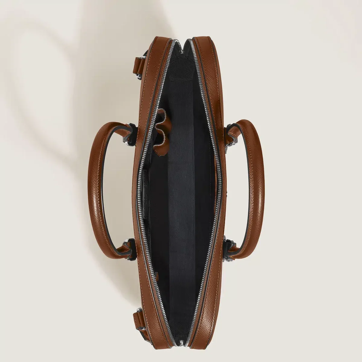 Diese schlanke Dokumententasche verbindet die Tradition der Schreibkunst von Montblanc mit eleganter, moderner Funktionalität. Sie ist aus geprägtem Sartorial-Leder in der Farbe Fauve gefertigt und speziell auf die Bedürfnisse von Geschäftsleuten zugeschnitten. Das geräumige Hauptfach bietet ausreichend Platz für A4-Unterlagen, elektronische Geräte und Schreibgeräte. Der abnehmbare, verstellbare Gurt bietet vielseitige Trageoptionen und macht die Mappe zu einer raffinierten und praktischen Wahl für Berufstätige.