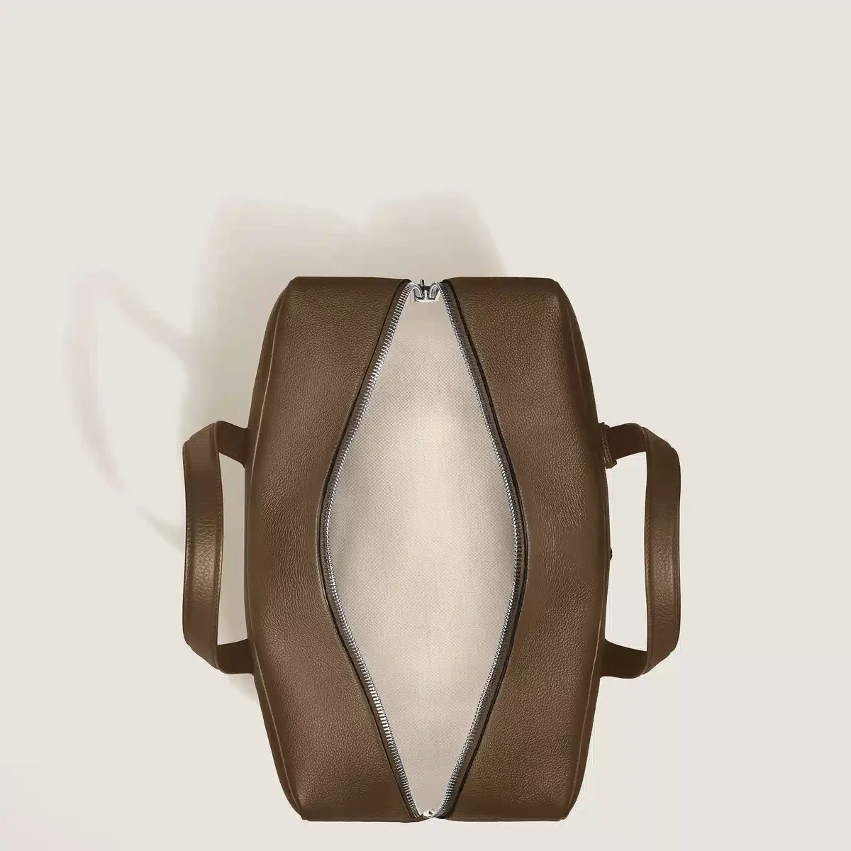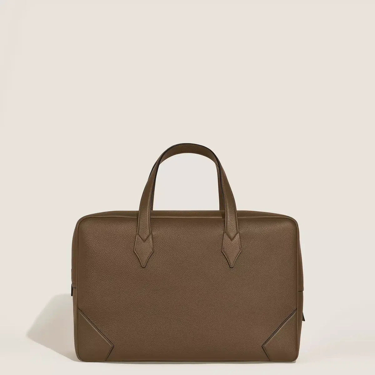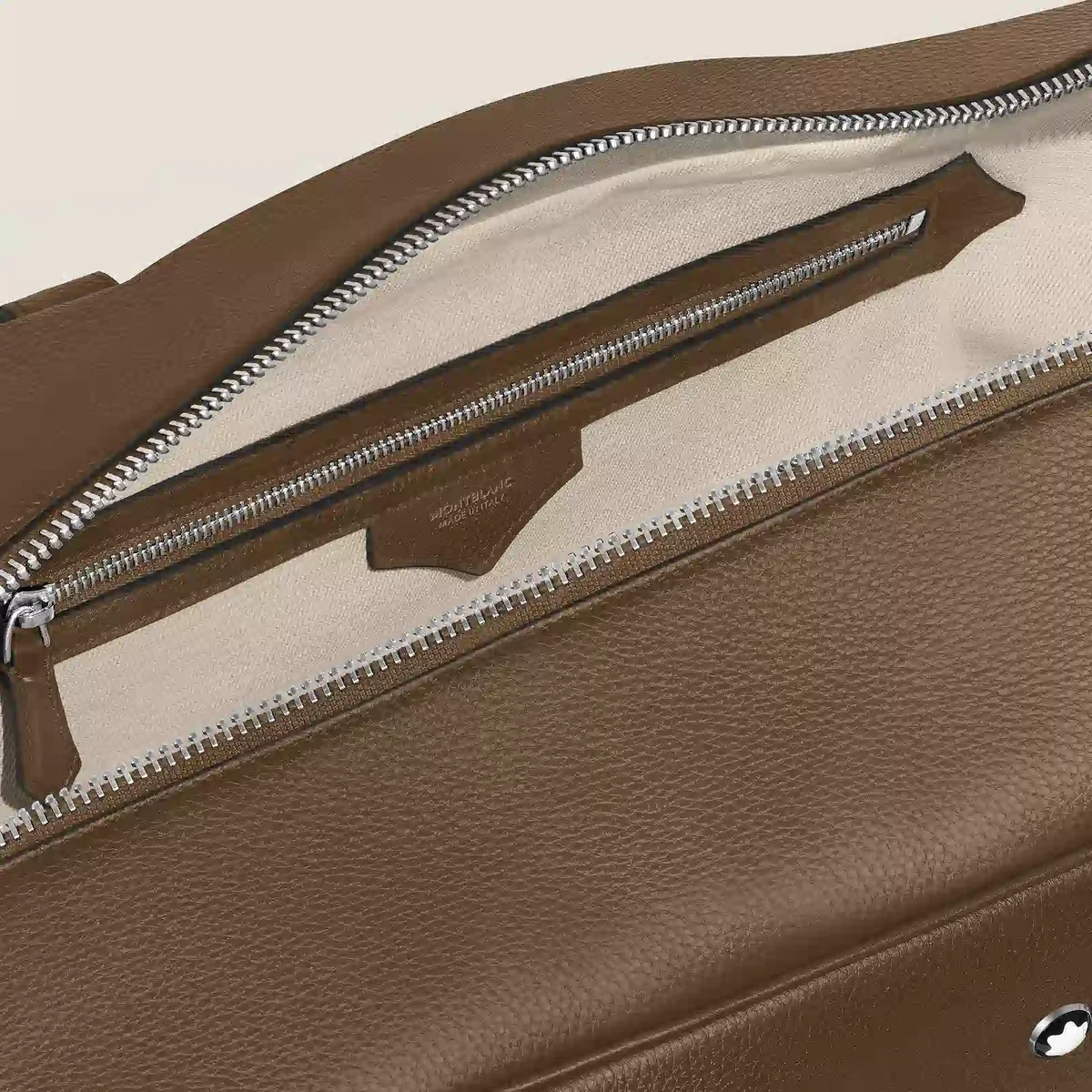 Die Montblanc 149 Tasche ist ein eleganter Begleiter für Kurztrips oder Wochenendausflüge und verbindet Funktionalität mit raffiniertem Design. Die reichhaltige Textur des genarbten Leders in Noisette verleiht ihr einen Hauch von Luxus, während der externe Verschluss mit Schloss und Schlüssel für zusätzliche Sicherheit für Ihre Habseligkeiten sorgt. Die Tasche verfügt über Eckdetails, die von der Form einer Tintenflasche inspiriert sind und die Kultur des Schreibens zelebrieren. Der geräumige Innenraum umfasst eine Reißverschlusstasche, zwei offene Fächer und eine spezielle Schlaufe für Ihr Schreibgerät, wodurch die Tasche ebenso praktisch wie raffiniert ist.