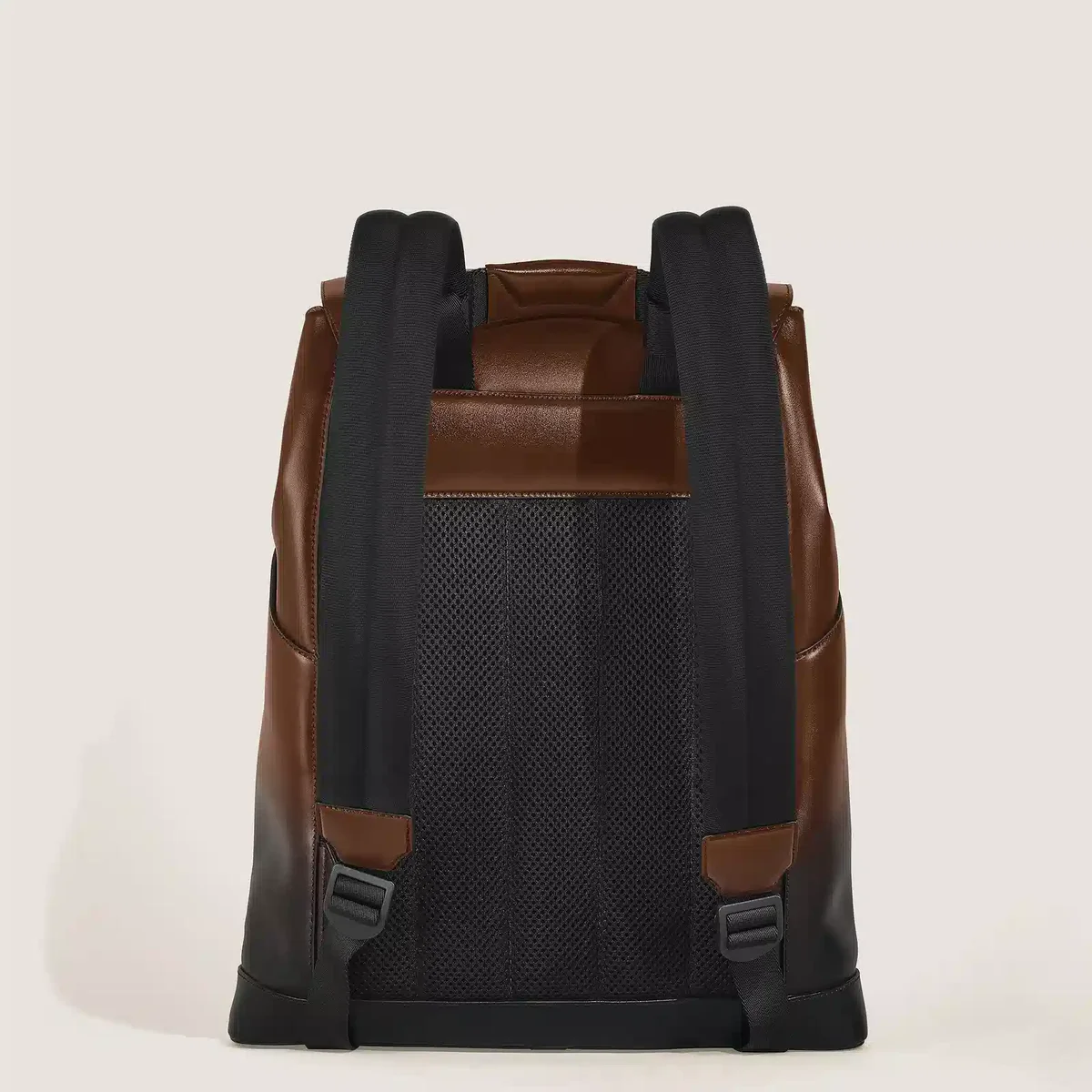Dieser mittelgroße braune Lederrucksack verkörpert Vielseitigkeit mit einem Hauch von Luxus. Sein reichhaltiges, von Hand aufgetragenes Farbverlauf-Finish, inspiriert von der Verteilung von Tinte auf Papier, verleiht seinem Design eine einzigartige Tiefe. Mit eleganten doppelten Frontriemen für zusätzliche Sicherheit und eine raffinierte Ästhetik lässt sich dieses vielseitige Stück nahtlos zwischen formellen und legeren Anlässen kombinieren. Der geräumige Innenraum umfasst ein gepolstertes Laptopfach für Geräte bis zu 13 Zoll, eine Reißverschlusstasche und spezielle Schlaufen für Schreibgeräte, während zwei offene Seitentaschen einfachen Zugriff auf wichtige Utensilien wie eine Wasserflasche oder einen Regenschirm bieten. Bitte beachten Sie: Dieses Produkt enthält Magnete. Bevor Sie es verwenden, lesen Sie bitte den Abschnitt über Magnete in der dem Produkt beiliegenden Serviceanleitung oder den Abschnitt „Kundenservice“ auf der Montblanc-Website. Bei spezifischen Fragen wenden Sie sich bitte an Ihren Arzt. Ident-Nr. MB220310 Abmessungen 350 mm * 150 mm * 430 mm