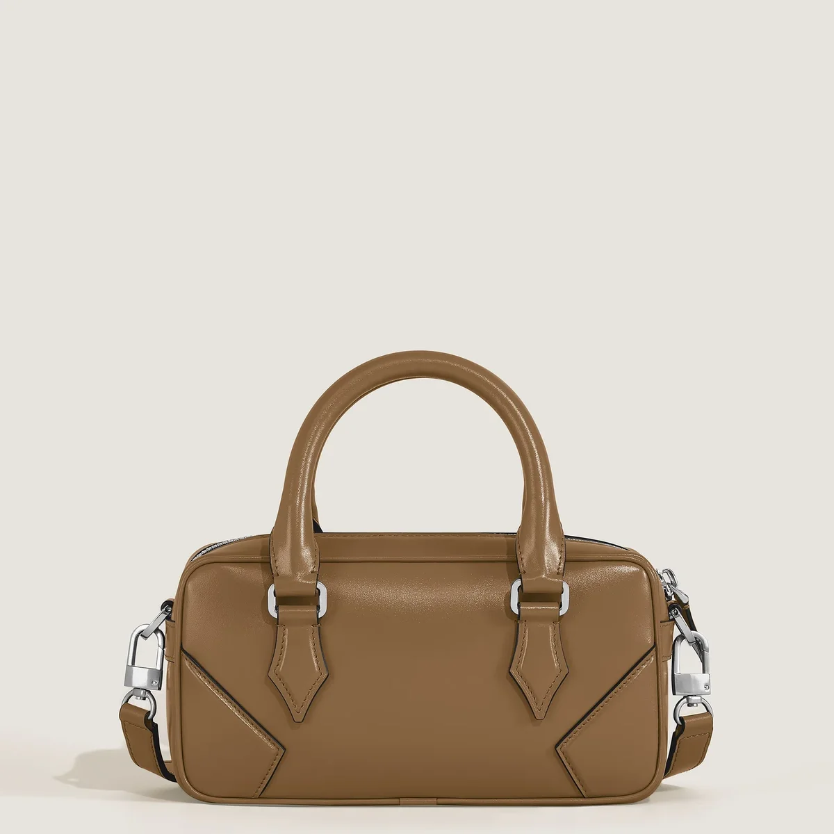 Entdecken Sie die neue stilvolle kleine Bowlingtasche aus elegantem sandfarbenem Meisterstück-Leder. Diese vielseitige Tasche bietet ein geräumiges Hauptfach und eine praktische Reißverschlusstasche für kleinere Utensilien. Mit zwei Tragegriffen oben und einem verstellbaren, abnehmbaren Schulterriemen verbindet sie mühelos Funktionalität mit raffinierter Eleganz.