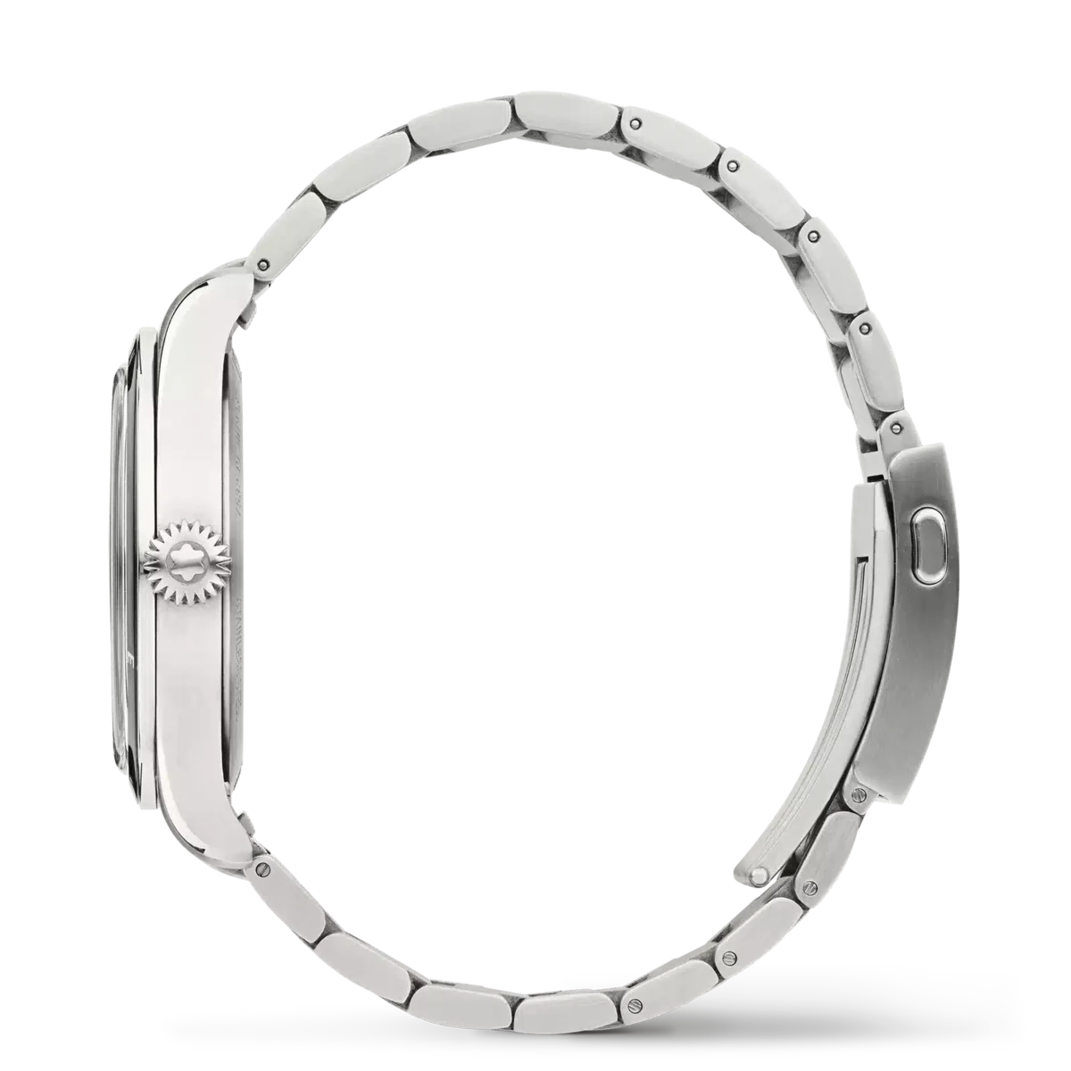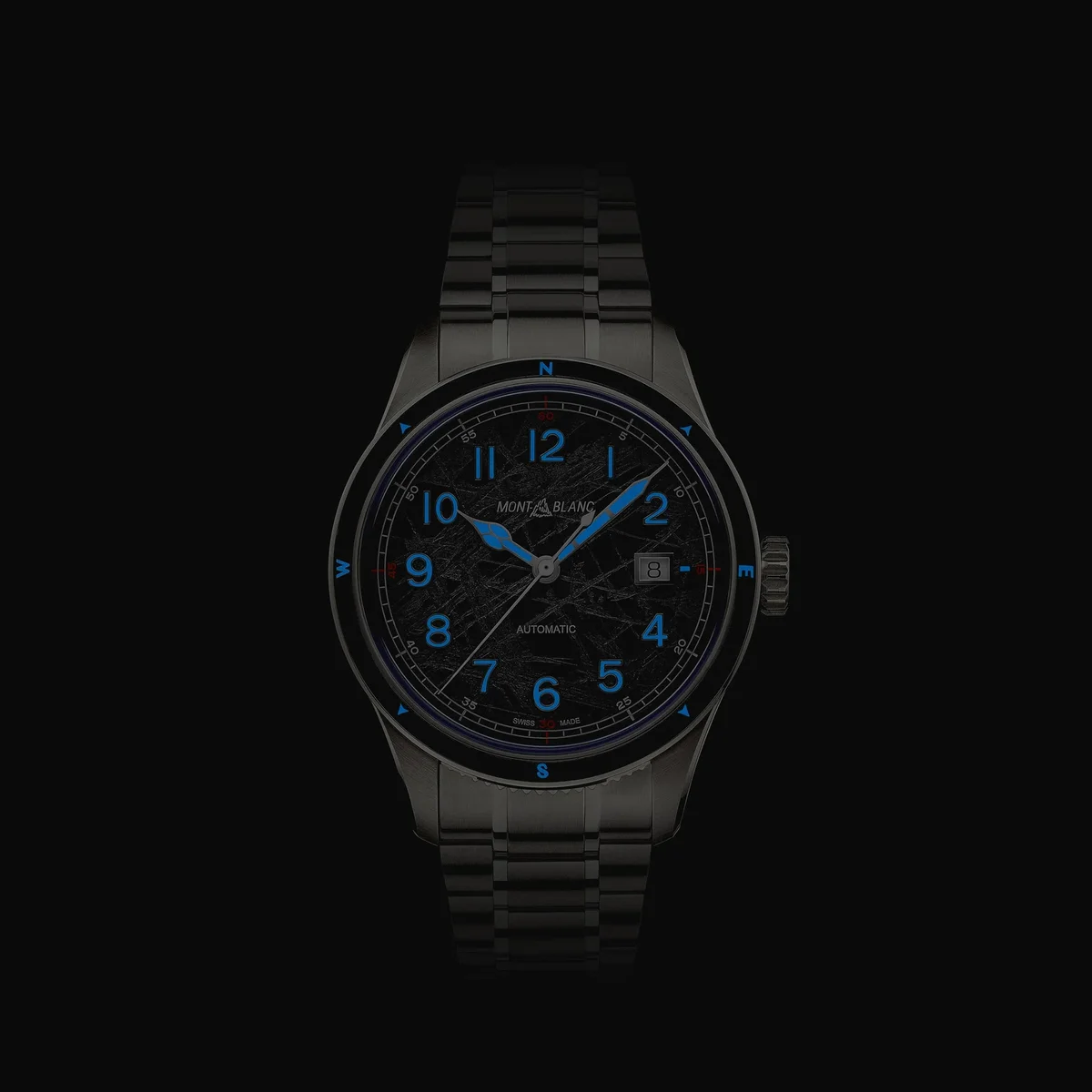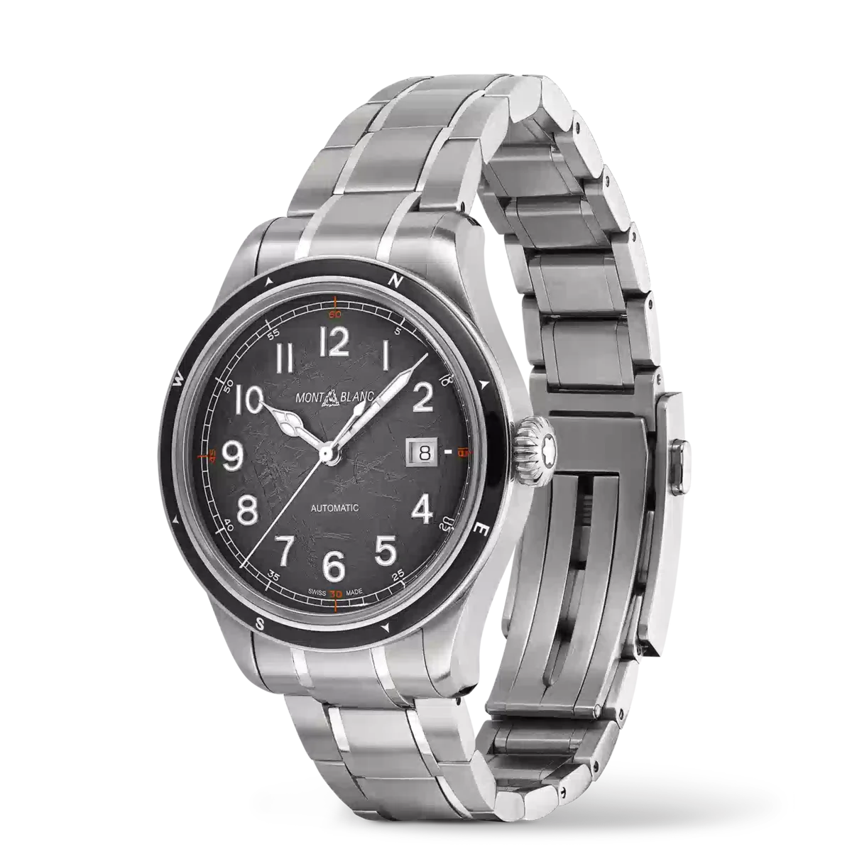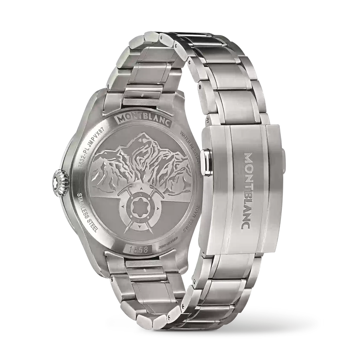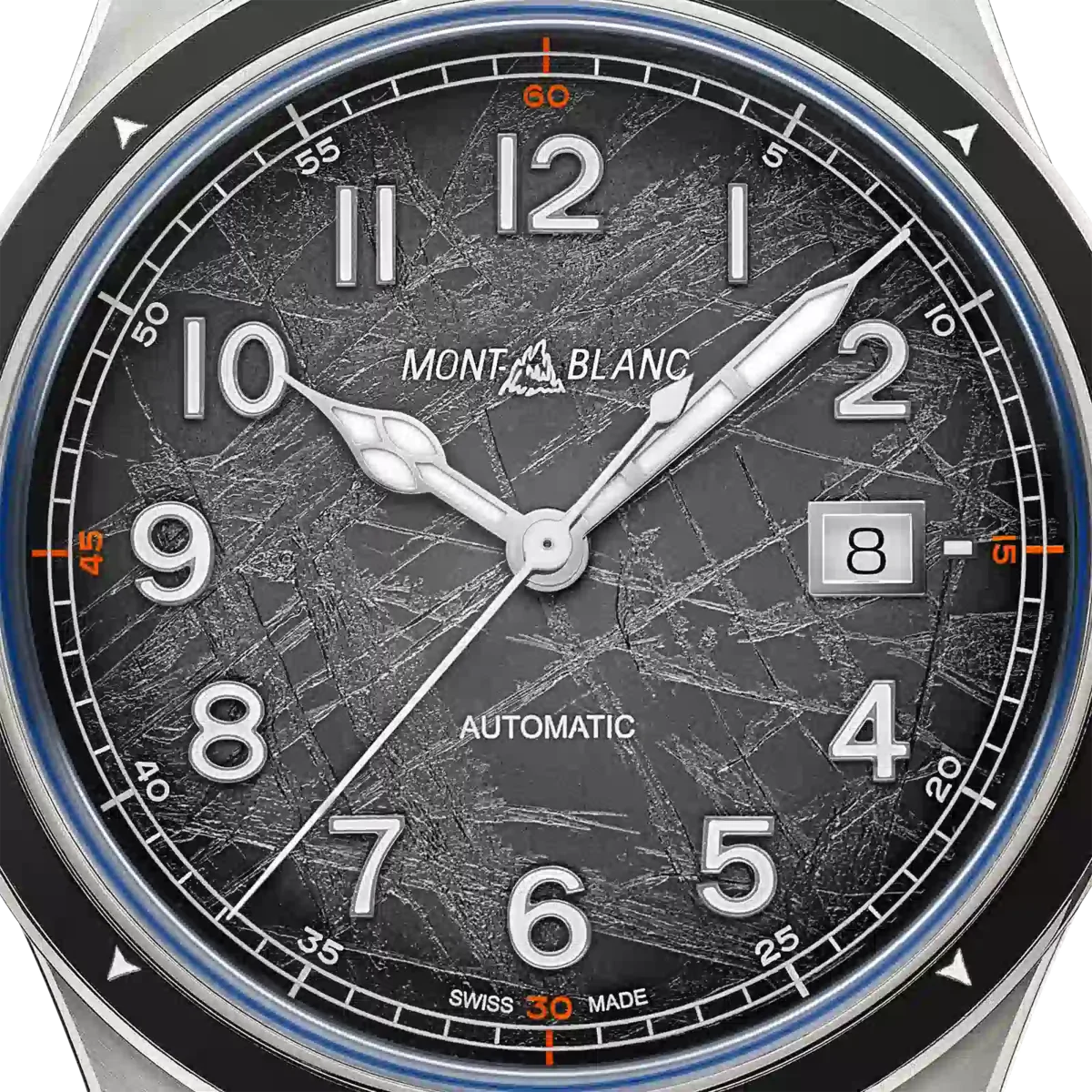 Als Hommage an die höchsten Gipfel der Welt und die Alpinisten, die es wagen, sie unter extremen Bedingungen zu besteigen, ist die Montblanc 1858 Automatic Date 0 Oxygen The 8000 in einem 41-mm-Edelstahlgehäuse untergebracht, das vollständig sauerstofffrei ist. Dies hat für Entdecker mehrere Vorteile: Es verhindert das Beschlagen und die Oxidation, wodurch das Uhrwerk länger hält und präziser arbeitet. Der Zeitmesser wird vom Automatikwerk MB 24.17 angetrieben und verfügt über eine schwarze Keramiklünette mit lumineszierenden Himmelsrichtungen, ein dunkelgraues Zifferblatt mit Sfumato-Gletschermuster und orangefarbenen Akzenten, blaue Lumineszenz und einen Gehäuseboden mit einer Gravur des „Spirit of Exploration”. Wie die anderen Modelle dieser Kapselkollektion verfügt auch die Montblanc 1858 Automatic Date 0 Oxygen The 8000 über ein austauschbares, konisch zulaufendes Edelstahlarmband mit Feineinstellung. Ident-Nr. MB130984
