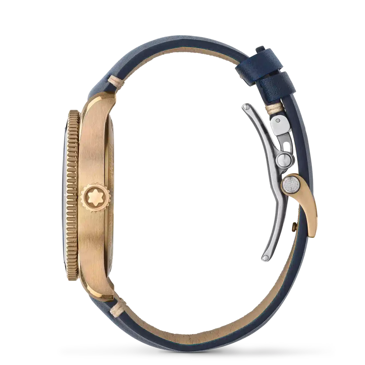 Die Montblanc 1858 Geosphere 0 Oxygen Limited Edition ist vollständig sauerstofffrei, um die Leistung und Präzision der Uhr auch unter härtesten Bedingungen in den Bergen langfristig zu verbessern. Der vollständig sauerstofffreie Uhrwerk verhindert nicht nur das Beschlagen, das bei starken Temperaturschwankungen in der Höhe auftreten kann, sondern auch Oxidation. Ohne Sauerstoff halten alle Komponenten deutlich länger und sorgen für eine höhere Präzision über einen längeren Zeitraum. Die Uhr verfügt über ein 42-mm-Gehäuse aus Bronze mit einer bidirektionalen gerändelten Keramiklünette mit lumineszierenden Himmelsrichtungen und dem Zifferblatt mit Gletschermuster des Hauses. Die Uhr wird vom Automatikwerk MB 29.25 mit Manufakturkomplikation angetrieben. Wie bei allen Modellen der 1858 Geosphere sind sowohl die nördliche als auch die südliche Hemisphäre mit zwei dreidimensionalen Globen dargestellt und verfügen über eine Tag- und Nachtanzeige, sodass der Träger mit einem Blick sehen kann, wie spät es auf der Erde ist. Ident-Nr. MB129415